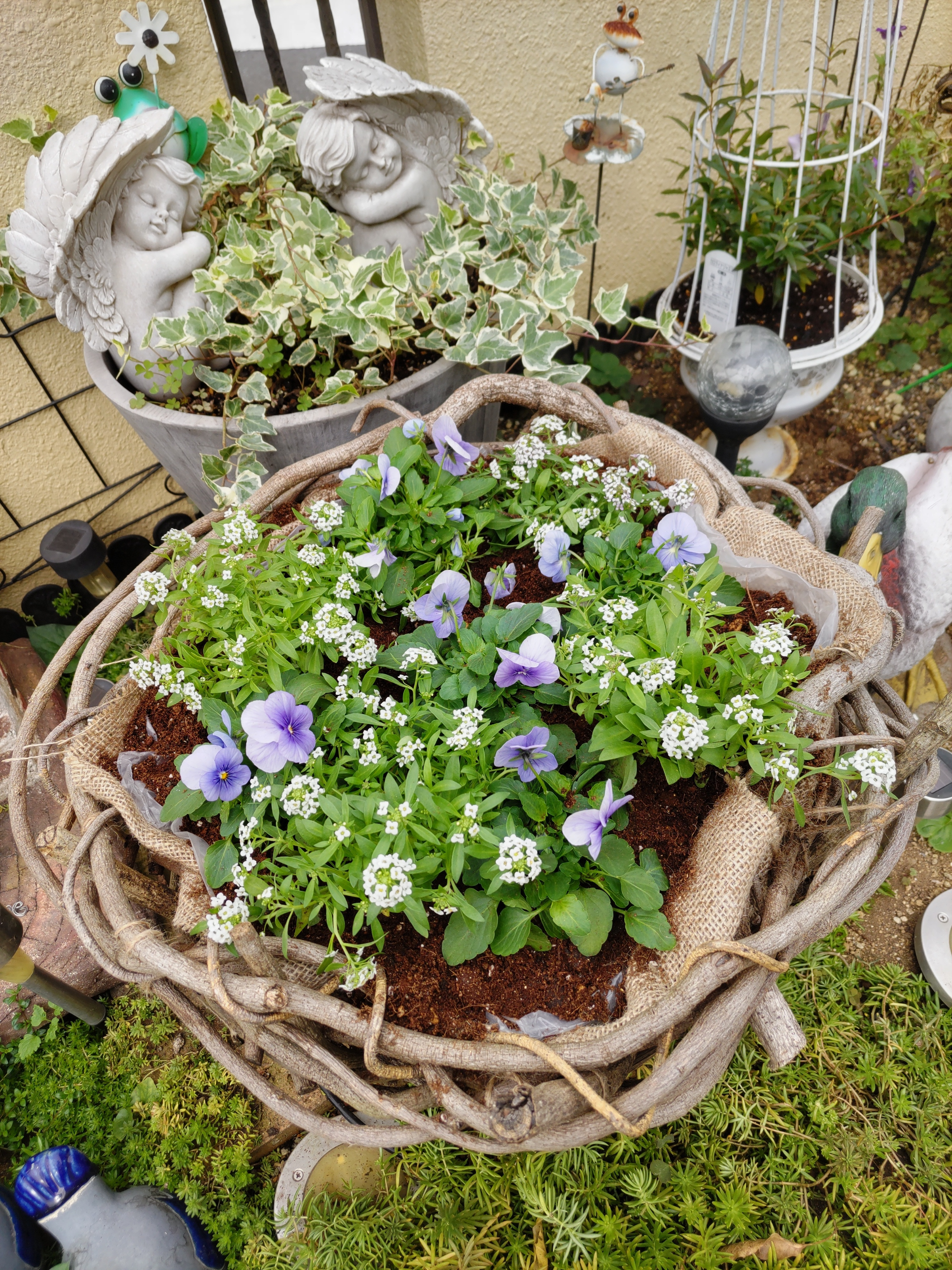 お花の寄せ植え、優しい雰囲気が出て素敵です😉💕