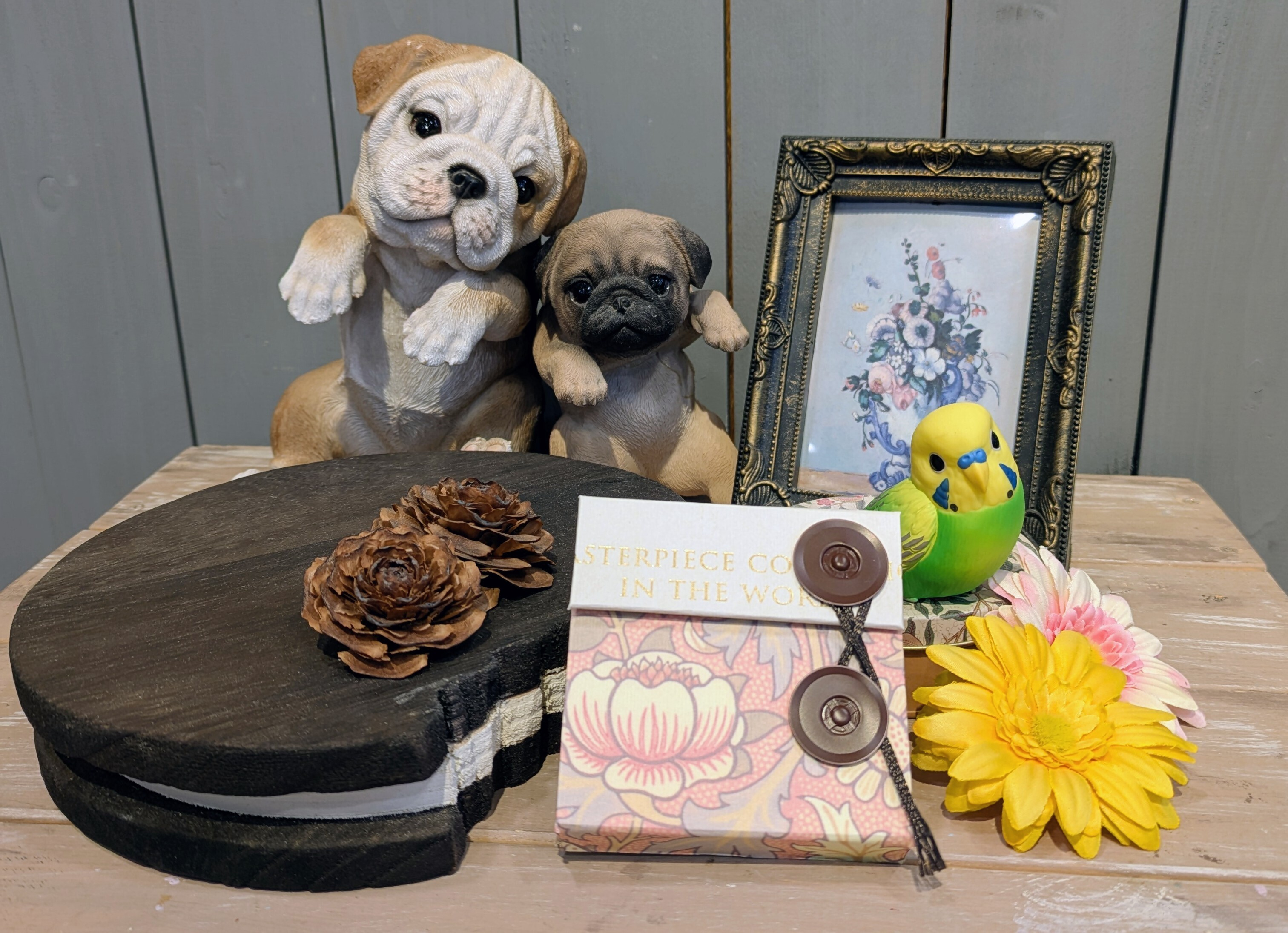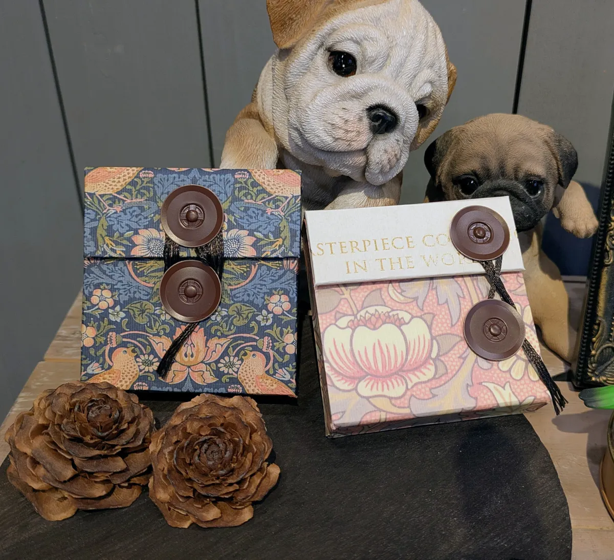 アンティークな柄のデザインに金の文字の配置もオシャレですね✨