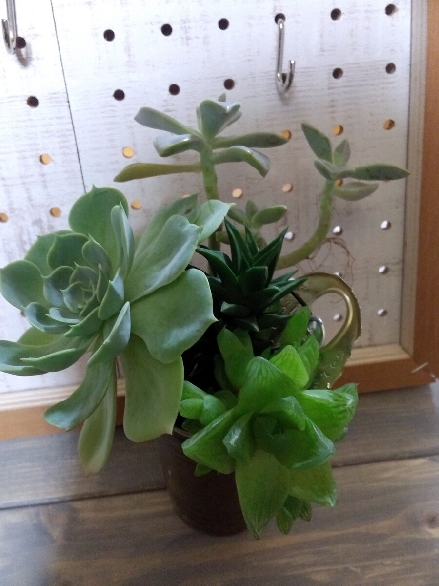 100均のゴールド塗料を下地無しでそのまま塗装、写真は3年目の寄せ植え、