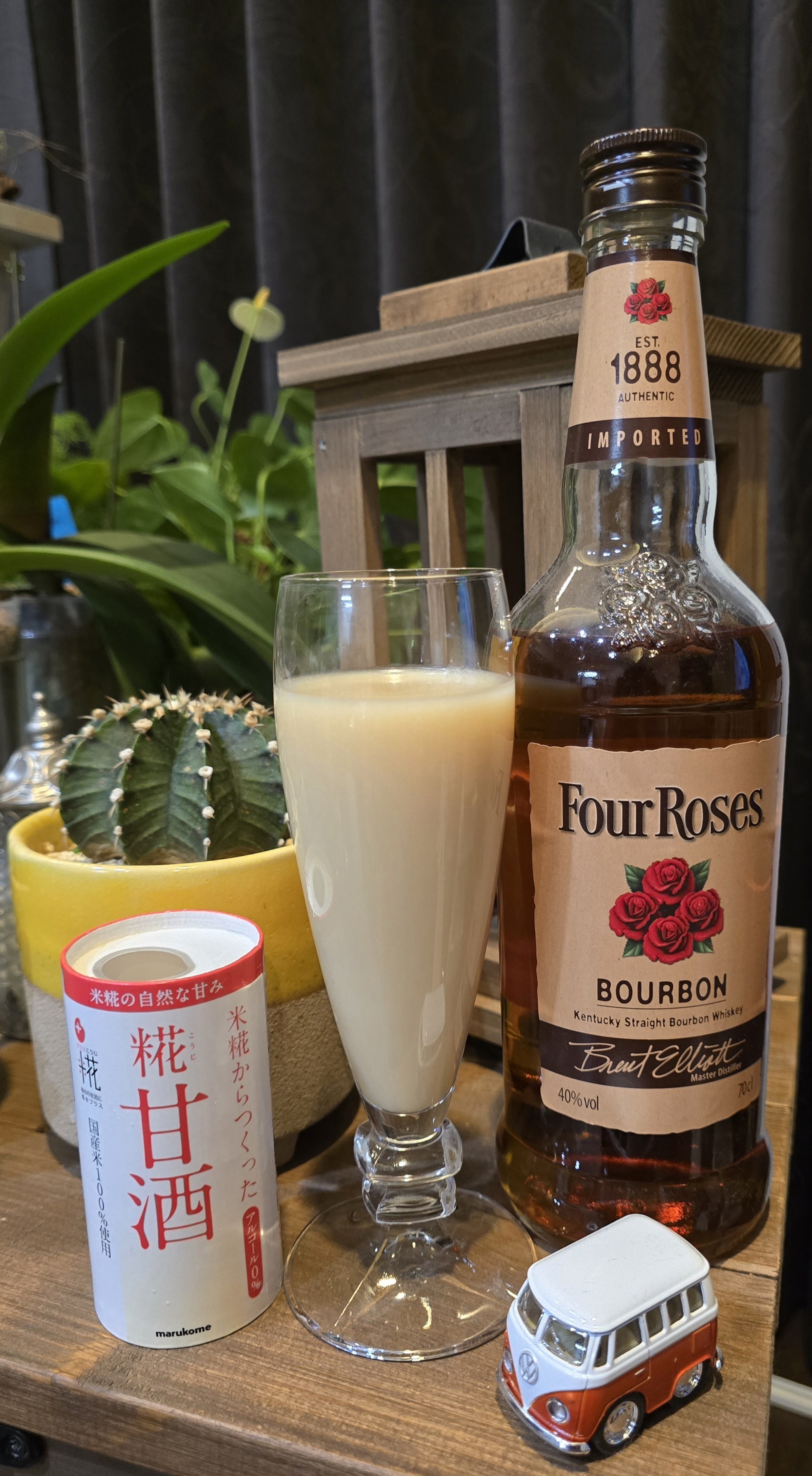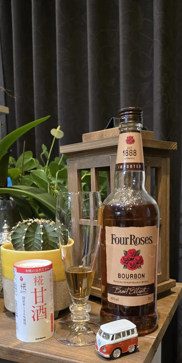 ☆砂糖不使用で自然な甘みの米麹甘酒と、フォアローゼズのフルーティなローズの香り&味わいがマッチして、とても飲みやすくて美味しいです😋💕