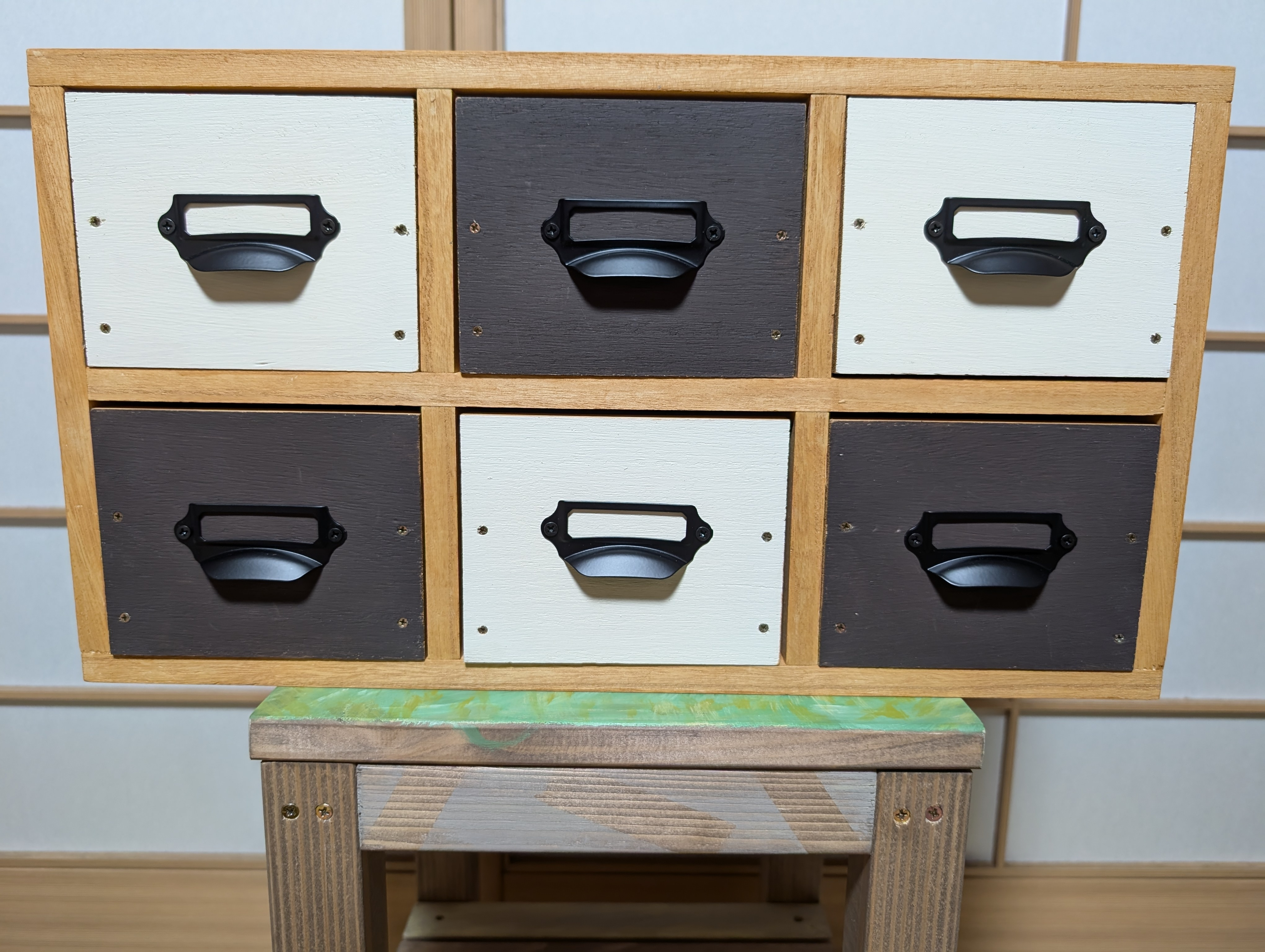 色はどうしよう🤔箱が2色だと配置の仕方で印象を変えることができていいですね☺️
