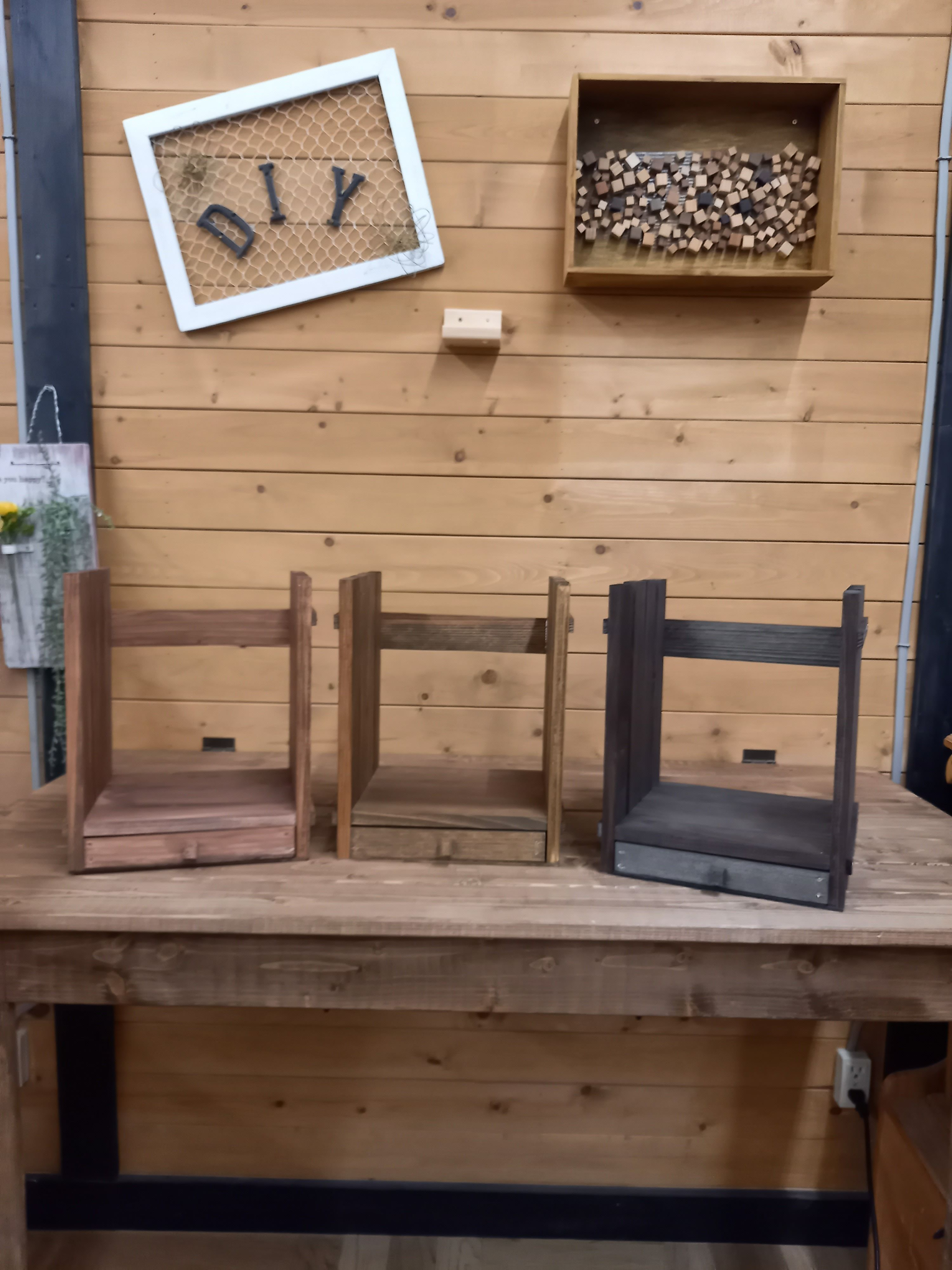トップ > DIY > インテリア > 引き出し付きブックスタンド 檸檬 2022/10/07 23:37 引き出し付きブックスタンド 少し前ですが、姪っ子、甥っ子と作ったブックスタンドです😊💕✌️ 2人とも、私の作品見てDIYに興味津々🎶楽しく参加させていただきました🍀 左から甥っ子、姪っ子、私の作品です。三人それぞれ好みの色で仕上げました❤️ 姪っ子はこの作品ブックスタンドでなく、この幅の引き出しを入れ文具などの収納にしているらしい😁それもありの利用方👌 いいね 共有する 共有する X LINE リンクをコピー コメントする 4 件の返信 (新着順) ミュートしたユーザーの投稿です。 投稿を表示 森の小さな工房 2022/10/08 11:33 檸檬さん 本立ての下に引き出しが付いて、とても実用的ですね。 配色も素晴らしいです。 落ち着いて、まとまった作品に仕上がってますね~。 \(^▽^)/ いいね 返信する ミュートしたユーザーの投稿です。 投稿を表示 檸檬 2022/10/08 19:42 森の小さな工房さん ありがとうございます😊💕 ブックスタンドですが、ノートや家計簿などだと下の引き出しにペンやメモ入れたら便利かな😄🎶👌と思っています いいね 返信する ミュートしたユーザーの投稿です。 投稿を表示 森の小さな工房 2022/10/08 21:45 檸檬さん なるほど、そうでしたか。 「ノートや家計簿~」の記述で着想を得ましたが、居間にあるエアコンの端末やテレビのリモコンを立てておくものに、引き出しを付けるのもよさそうですね。 付箋やメモ用紙を入れておくと何かと役に立ちそうです。 既に市販されているかもしれませんね~。 (^▽^)/ いいね 返信する ミュートしたユーザーの投稿です。 投稿を表示 てんこ 2022/10/08 09:57 こんにちは おい・めいさんと 一緒に参加できるなんて、楽しいですね みんな素敵な作品ですね。 いいね 返信する ミュートしたユーザーの投稿です。 投稿を表示 檸檬 2022/10/08 19:37 てんこさん ありがとうございます😊💕 それぞれ好きな色を選んだらこうなりました😄🎶 いろいろなことに興味をもってやりたいことを、出来るだけサポートしてあげたいと思っています😁 いいね 返信する ミュートしたユーザーの投稿です。 投稿を表示 Smile 2022/10/08 06:29 とっても素敵な作品ですね。 姪っ子さん、甥っ子さんにとって自慢のおばさまですね。 いいね 返信する ミュートしたユーザーの投稿です。 投稿を表示 檸檬 2022/10/08 07:15 ちょこりんさん ありがとうございます😊💕 一緒にWSに参加したのは、初めてだったので楽しかったです😆🎵🎵 姪っ子、甥っ子におばちゃんと言われるのが嫌で😂💦子どもたちから「○っ○ー」と呼ばれています。○の中の文字は、私の名前の2文字です😁 ちょこりんさんなら分かるよね😄🍀 いいね 返信する ミュートしたユーザーの投稿です。 投稿を表示 べるん 2022/10/08 00:47 久しぶりに甥っ子さん、姪っ子さんの作品が登場しましたね🎵 DIY力がどんどん上達してこれからも楽しみですね。 姪っ子さんのアイデアお洒落ですね✨ いいね 返信する ミュートしたユーザーの投稿です。 投稿を表示 檸檬 2022/10/08 07:10 べるんさん ありがとうございます😊💕 一緒にWSに参加出来たのは、初めてだったので楽しかったです🎶 姪っ子のアイデアはなるほど🤔と思いました。今度写メ送って貰おう😁💡 甥っ子はWSも楽しかったようですが、端材で自由に作る方が楽しいようです😅 いいね 返信する ミュートしたユーザーの投稿です。 投稿を表示 べるん 2022/10/08 09:24 流石男の子ですね✨ 1からのDIYは楽しいですもんね😃 端材も魅力的ですし😍 いいね 返信する