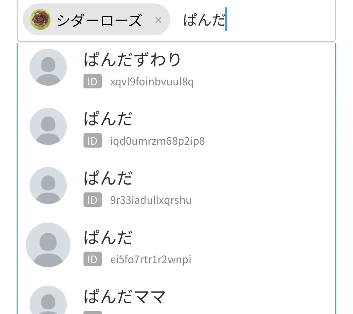 ではここでぱんださんをワタクスが呼びたいな思うて、メンションにそのまま入力してみると複数の方が選択肢に現れるのだわぁ〜🐼📛👀✨