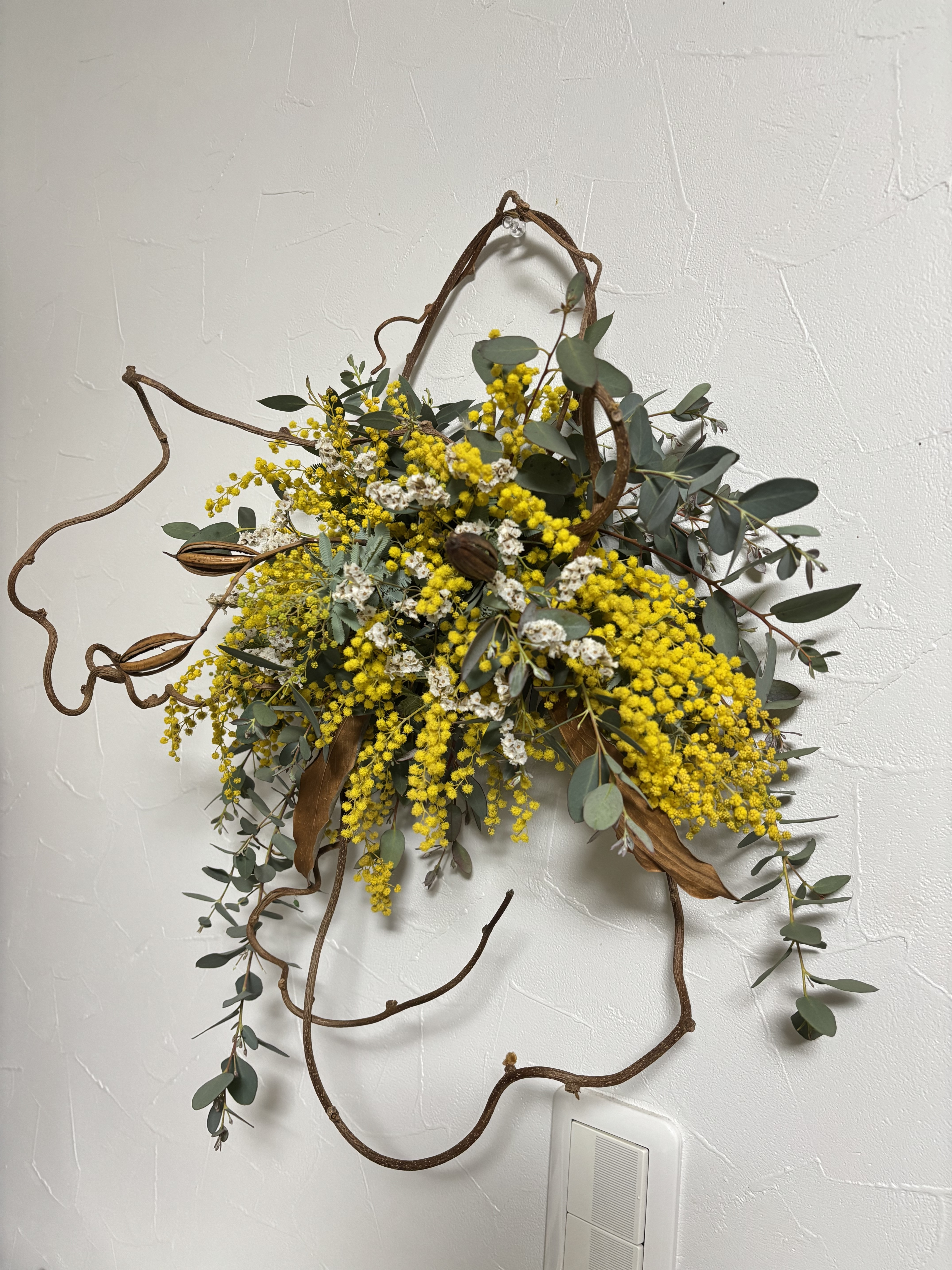 投稿を表示蔓性植物とユーカリとミモザって合いますね🎶