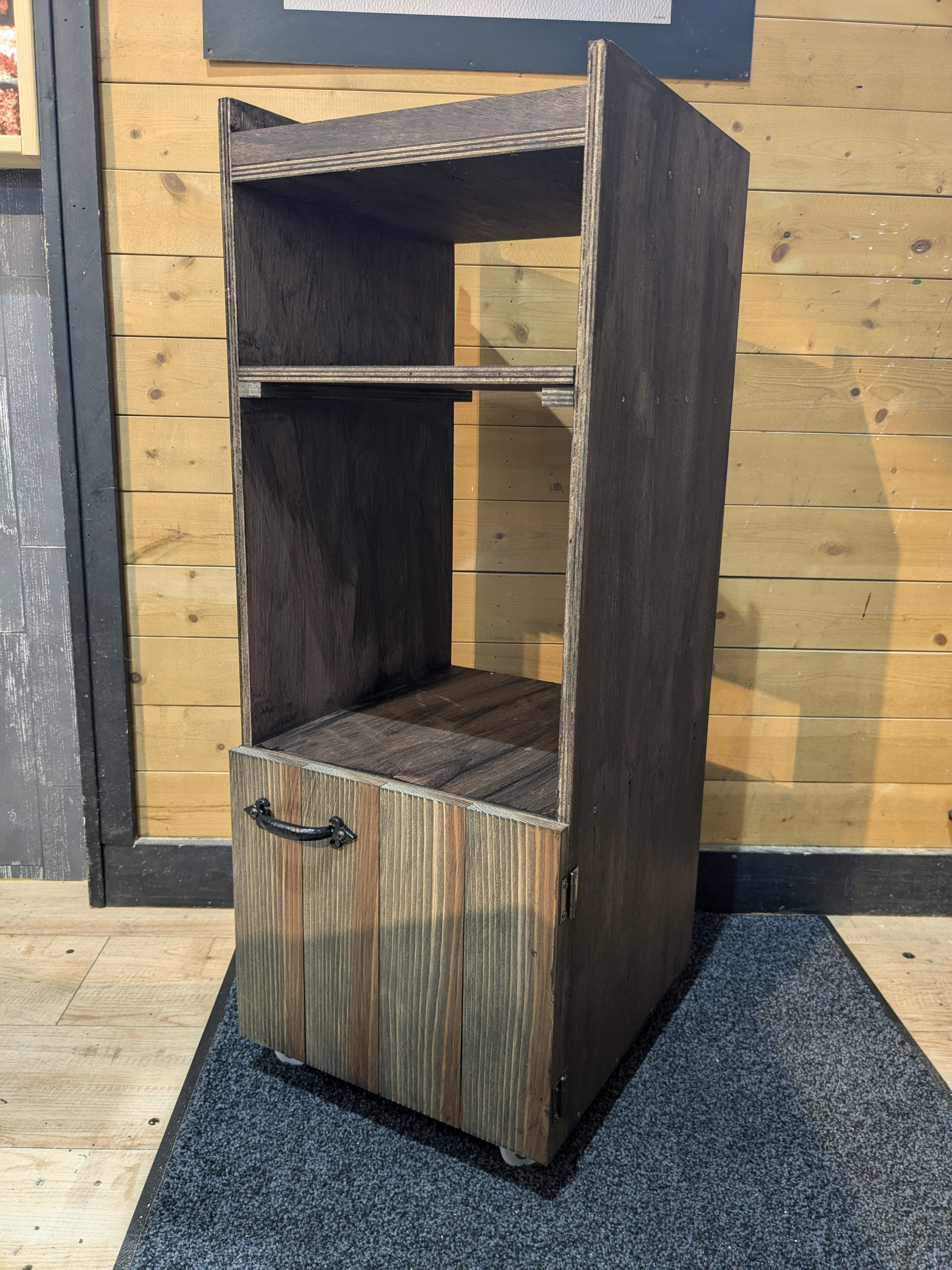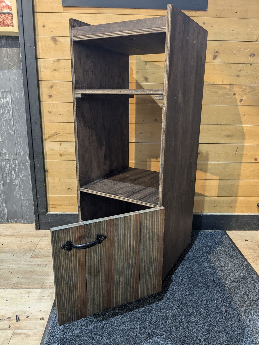 トップ > ワークショップ > 動かせる収納棚 (SN-61) おひで 2024/07/31 15:20 動かせる収納棚 (SN-61) 今日は久々にホームの吉田店でワークショップでした。今回は動かせる収納棚を作ってきました。 いろいろとアクシデント(棚板の位置のズレや合わせる木材を間違えて分解など)はありましたが、今回も予定時間3時間のところ、アクシデントでのやり直しを含めてで1時間45分くらいで出来上がりました。 扉もうまくつけられました。取っ手についてはあえてこうしてみました。 もともと板が赤みが強かったので、黒で塗ってはいますが、色がこげ茶っぽくなりました。もとの風合いが活きていい感じに仕上がりました。 いいね 共有する 共有する X LINE リンクをコピー コメントする 2 件の返信 (新着順) ミュートしたユーザーの投稿です。 投稿を表示 きき 2024/07/31 18:48 アクシデントがあっても完成時間早いですよね🤗 木目が綺麗に出て素敵な作品が出来ましたね🤗ホームでのWSもいいですね🥰 いいね 返信する ミュートしたユーザーの投稿です。 投稿を表示 わんだ 2024/07/31 17:27 木目が活かされて素敵な作品になりましたね✨ 黒も木の色味で随分雰囲気変わりますね。 いいね 返信する