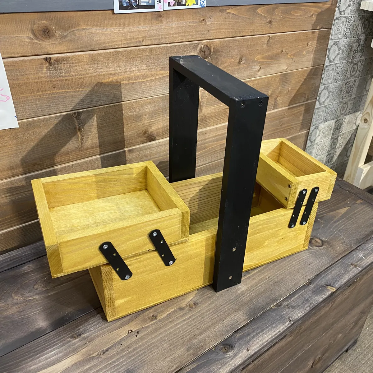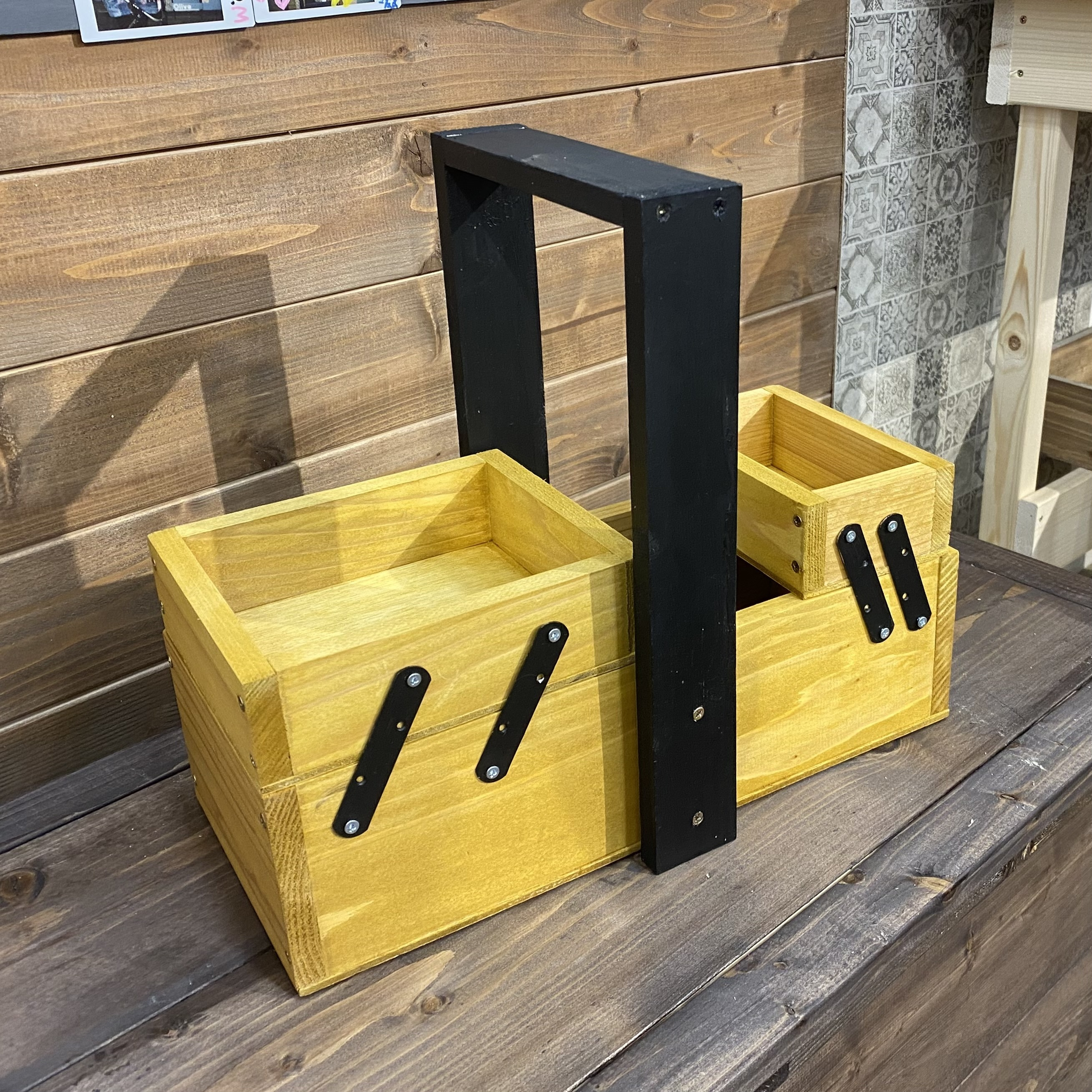 トップ > ワークショップ > 棚・収納 > 木材で両開きツールボックス kao 2026/01/11 17:25 木材で両開きツールボックス 今年初めてのWSに行き、ツールボックスを作った! 金具の調整が難しくて、締めすぎると開閉出来なくて、ネジを締めたり緩めたり…💦 色は持ち手、ブラック 本体、パイン 思ったほど、開かないの😂改良の余地あり? 3時間もかかるのかと途中思ったが、金具の印つけが細かくて、意外にかかった😅 1時までには終わったので、良しとしよう👍 先生、今年もよろしくお願いします🙂 いいね 共有する 共有する X LINE リンクをコピー コメントする 2 件の返信 (新着順) ミュートしたユーザーの投稿です。 投稿を表示 ダンボ 2026/01/12 18:02 これはいいですね! 私もこのWSに参加したいな! いいね 返信する ミュートしたユーザーの投稿です。 投稿を表示 kao 2026/01/12 21:10 ダンボ ダンボさん、ありがとうございます♪ ぜひ、作ってください! どんな作品になるのか?楽しみです🤩 いいね 返信する ミュートしたユーザーの投稿です。 投稿を表示 くままん 2026/01/12 01:29 可愛い💕可愛い外見からはうらはらに、手強いWSなんですね💦完成お疲れ様でした✨ いいね 返信する ミュートしたユーザーの投稿です。 投稿を表示 kao 2026/01/12 09:16 くままん くままんさん、ありがとうございます♪ 金具の取付けに多少手こずりましたが、他は大丈夫ですよ👌 何を入れて使おうかな? いいね 返信する