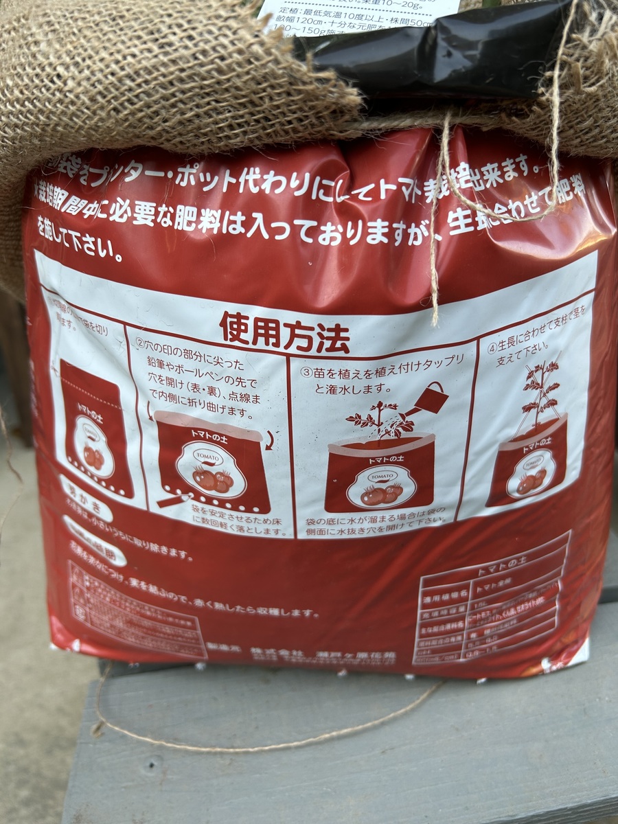 私のアイデアではありませんし、既にご存知の方も多いとは思いますが、土の入った袋をそのままプランターとして使うという、とっても便利な「トマトの土」を使って、ミニトマトの栽培を始めてみました🍅