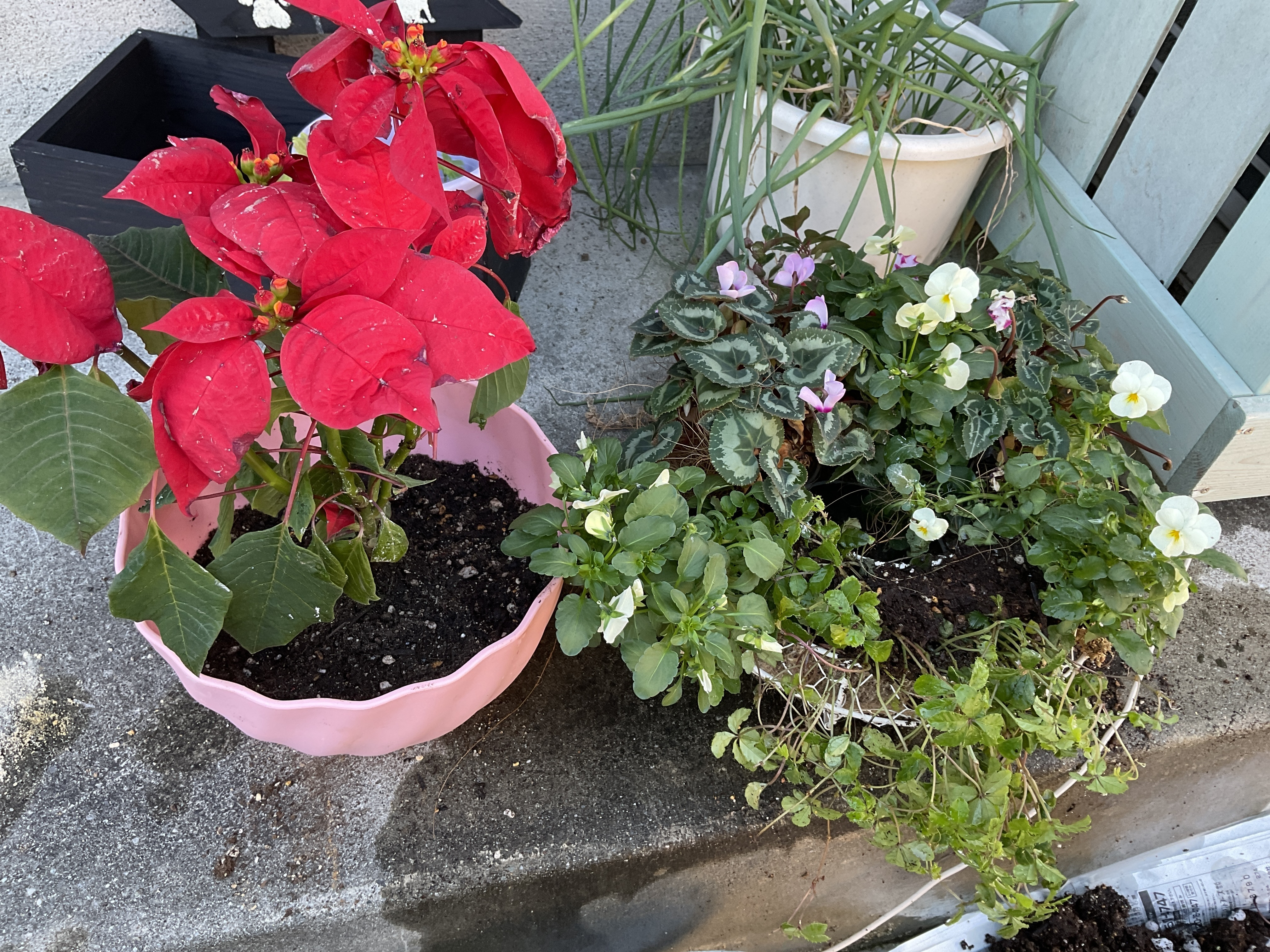 投稿を表示シクラメンは一つ枯れてしまって、もう一つには、ポインセチアまで、葉は、しろくなってしまうし。
