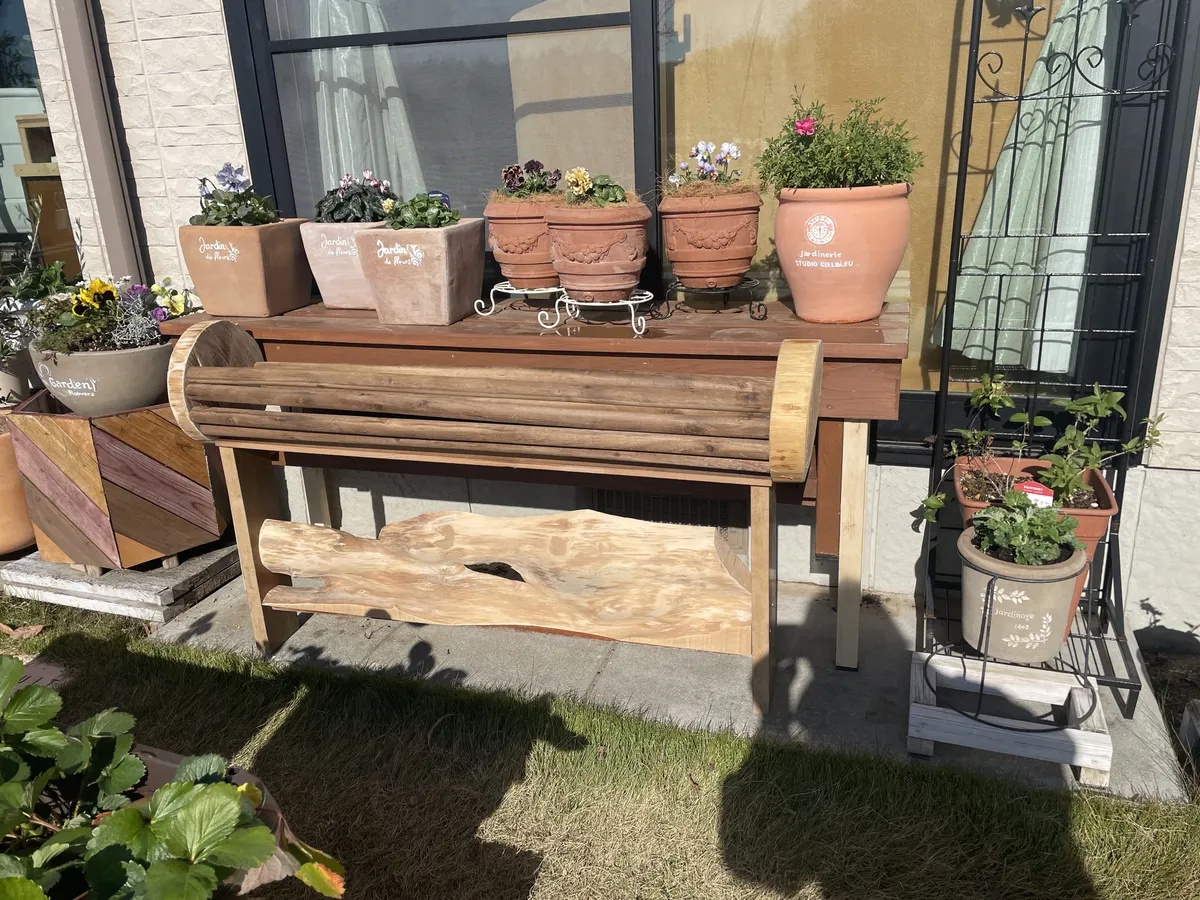 ひとまず完成です。後ろのプランター台は先日高さを上げる為に脚を追加して高さをアップしておきました。