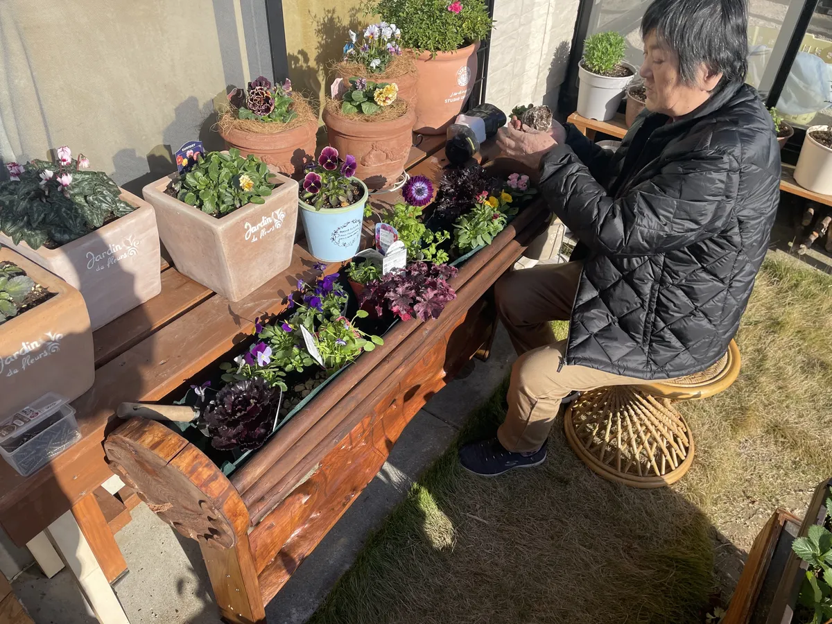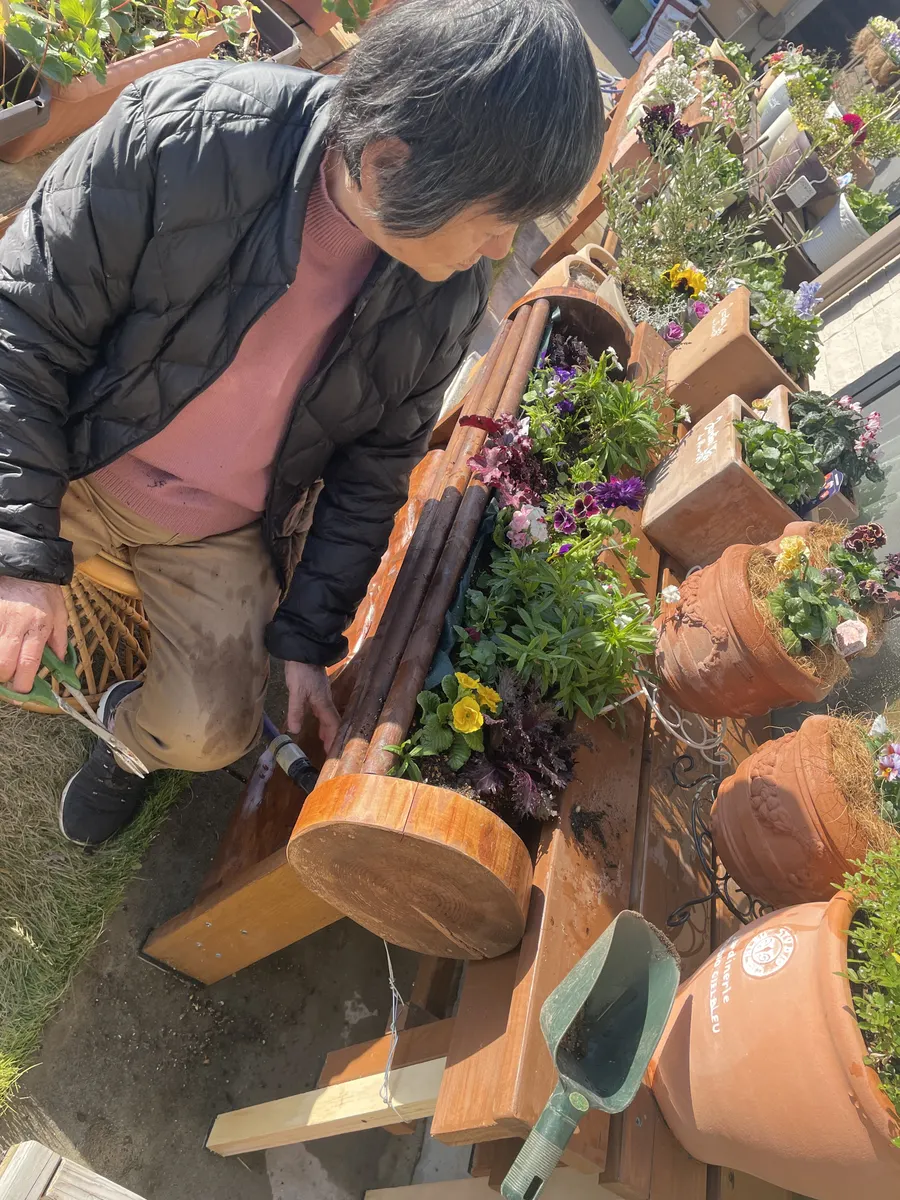 あーでもない、こーでも無いと色々と考えながら植え付け作業を一生懸命に頑張ってます。あのぉ〜ズボン👖汚れてますけどぉ〜笑