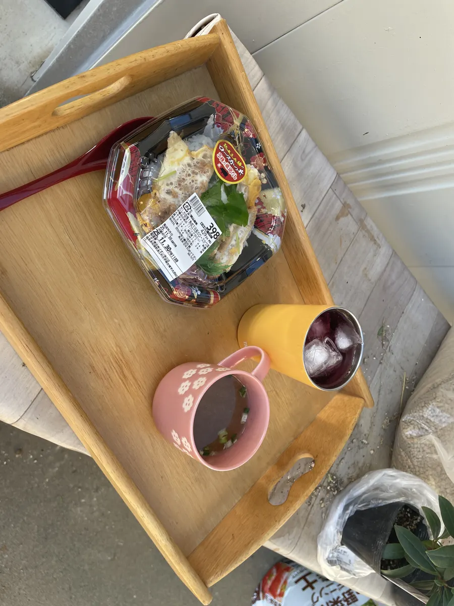 妻が作成したお礼に昼ごはんを用意してくれました。ん?お弁当🤭?お昼は湯婆婆さんの植え付けを見ながらお外でランチを頂きます。