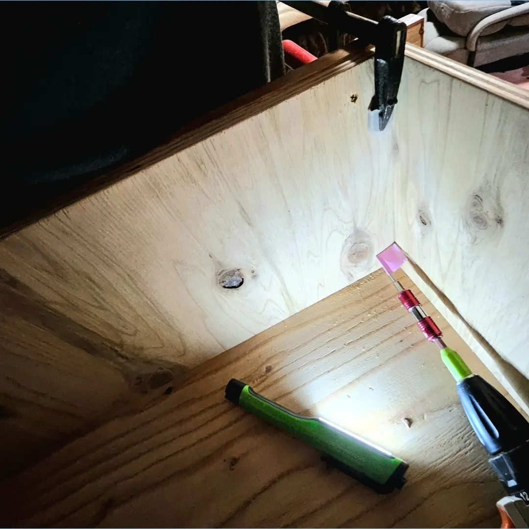 引出し内側からビスで固定していきます🔦🗜🪛
