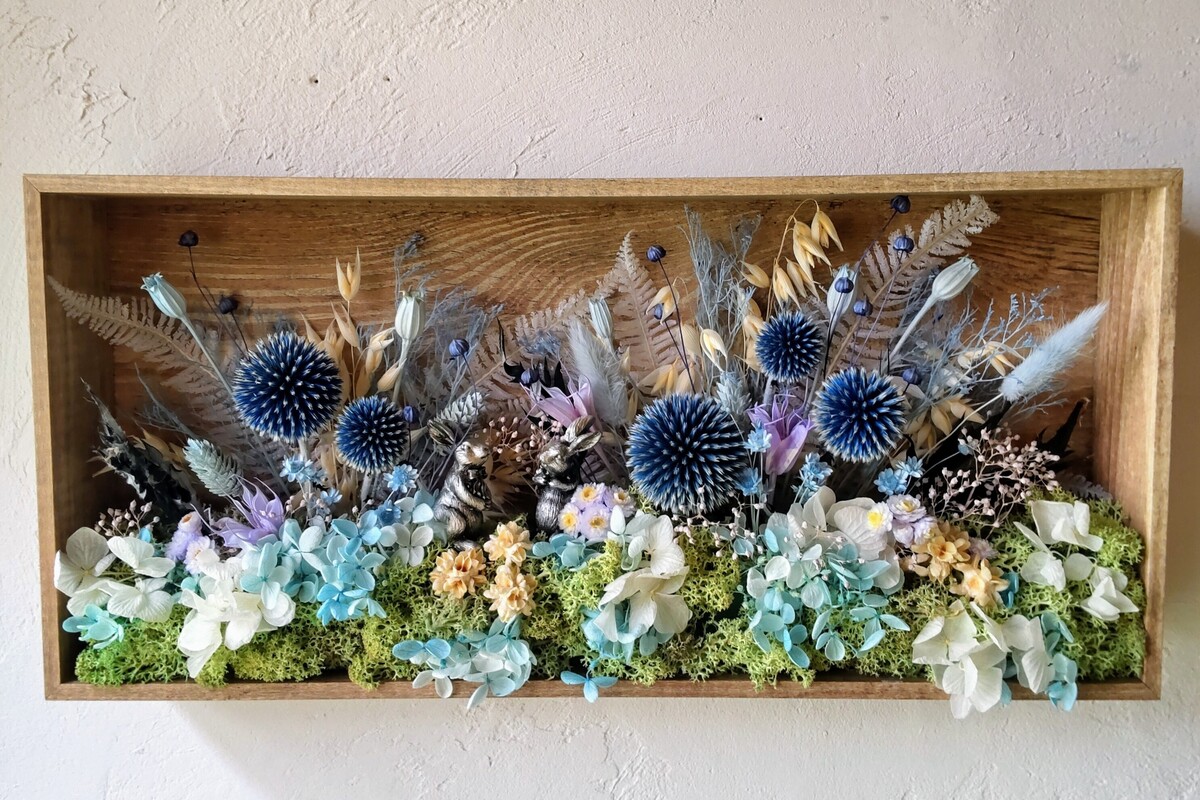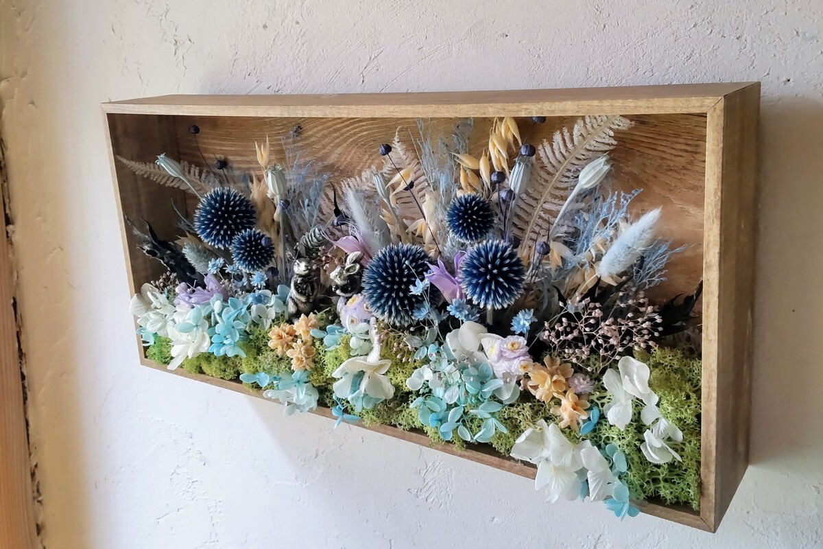 ブルー系のお花を使う、とのことで、見本作品に一目惚れして申し込みました😍