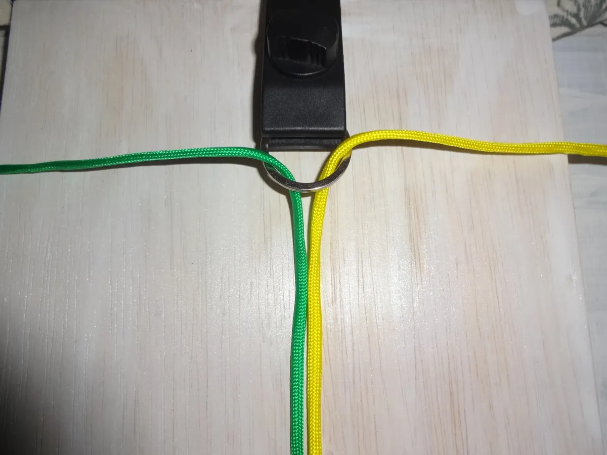 ↓ 右側の 緑の1巻き も図の様に上から下に通します。黄に変わっても通し方は同じです。