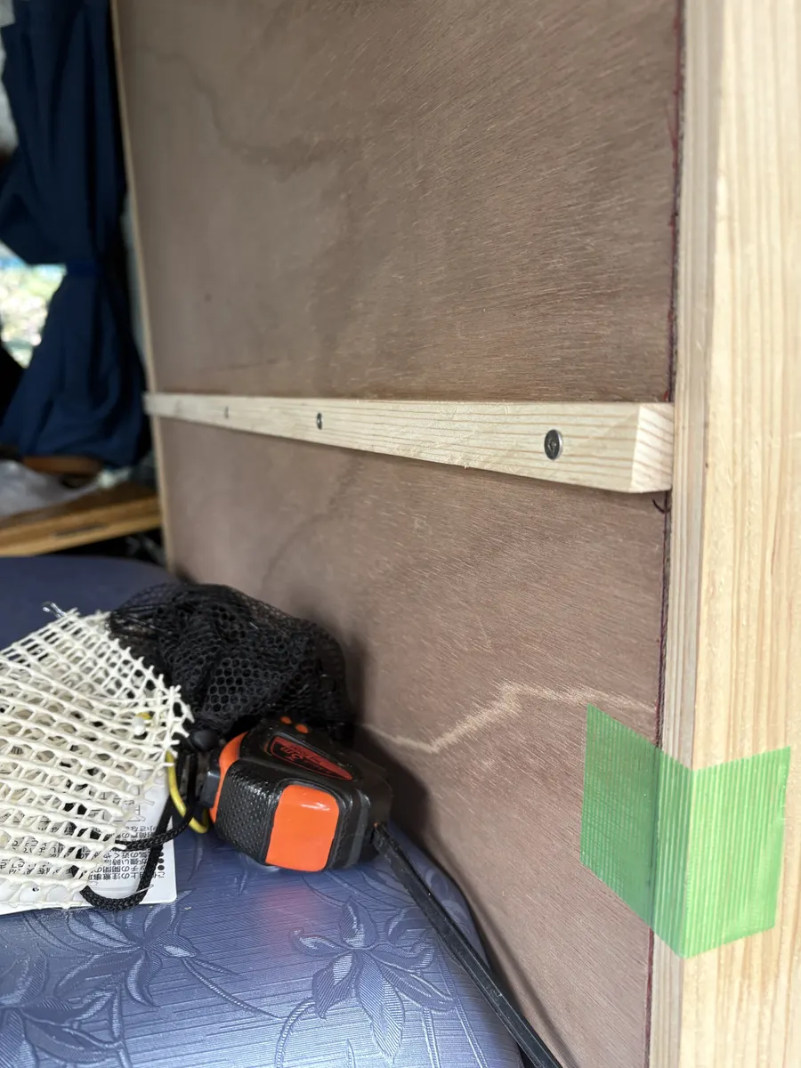 トップ > その他 > その他 > 現在までの進行状況ですが・・・・・・・・8 忍城の鷹 2026/01/07 12:25 現在までの進行状況ですが・・・・・・・・8 後部テーブル兼棚受け作成 左右の壁板にテーブル受の取付、残材で受材を作成して左右の壁板に取り付けしましたが 縦横にズレがあり少し不満ですが、此れもど素人の味と思い納得 この受はテーブルのベンチシート利用時に前後に可動させるので壁いっぱいに取付て相向かいでも 利用できる様にしてある為移動時に動いてしまいそうです。 何かで移動時に動かない様にストッパーを考えています。 いいね 共有する 共有する X LINE リンクをコピー コメントする 3 件の返信 (新着順) ミュートしたユーザーの投稿です。 投稿を表示 toshi 2026/01/10 08:27 ここまで進んでいるのですね 完成も近いですね😊 いいね 返信する ミュートしたユーザーの投稿です。 投稿を表示 忍城の鷹 2026/01/11 15:48 toshi toshiさん コメント有り難う御座います。 完成はまだまだです。 いいね 返信する ミュートしたユーザーの投稿です。 投稿を表示 toshi 2026/01/11 15:54 忍城の鷹 毎回アップを楽しみにしてます いいね 返信する ミュートしたユーザーの投稿です。 投稿を表示 チコリ 2026/01/08 01:15 素人とは思えない作業されてますね👍 進捗状況楽しみです😊 いいね 返信する ミュートしたユーザーの投稿です。 投稿を表示 忍城の鷹 2026/01/11 15:47 チコリ チコリさん コメント有り難う御座います。 画像で見ると粗が見えないので助かりますが隙間やズレが万歳です。 前回は何も考えず思いのままに作ってしまいな 今回は色々調整していたのですがやはり一番最初のベースを決めずにした為 ズレまくりです。😭 いいね 返信する ミュートしたユーザーの投稿です。 投稿を表示 ダンボ 2026/01/07 12:56 進行状況を随時お知らせください! いいね 返信する