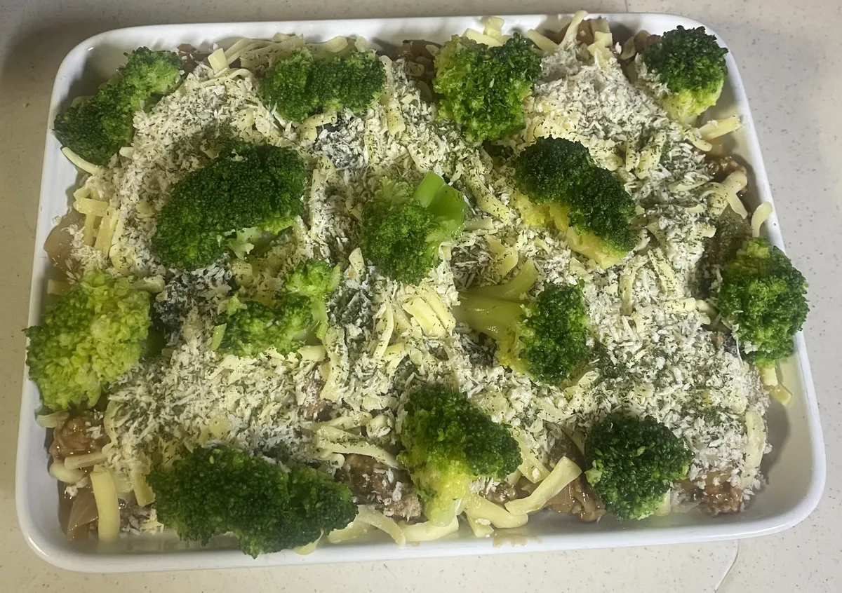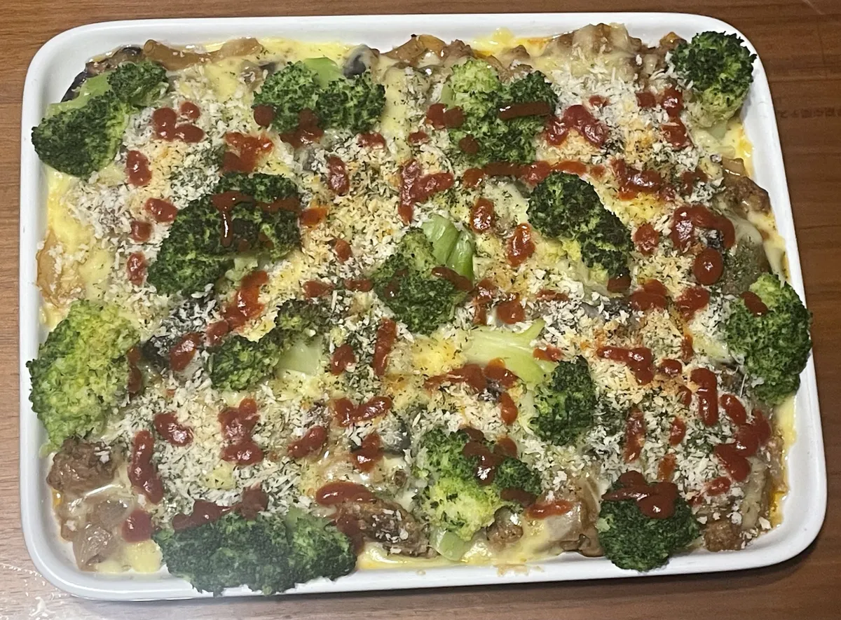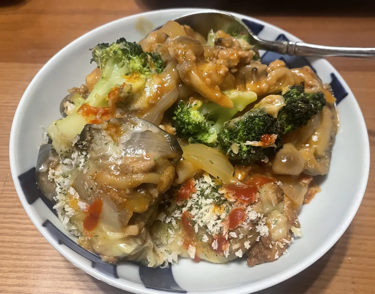 ミートソース用グラタン(2箱)・豚挽き・玉葱・冷凍揚げ茄子・ブロッコリー✨