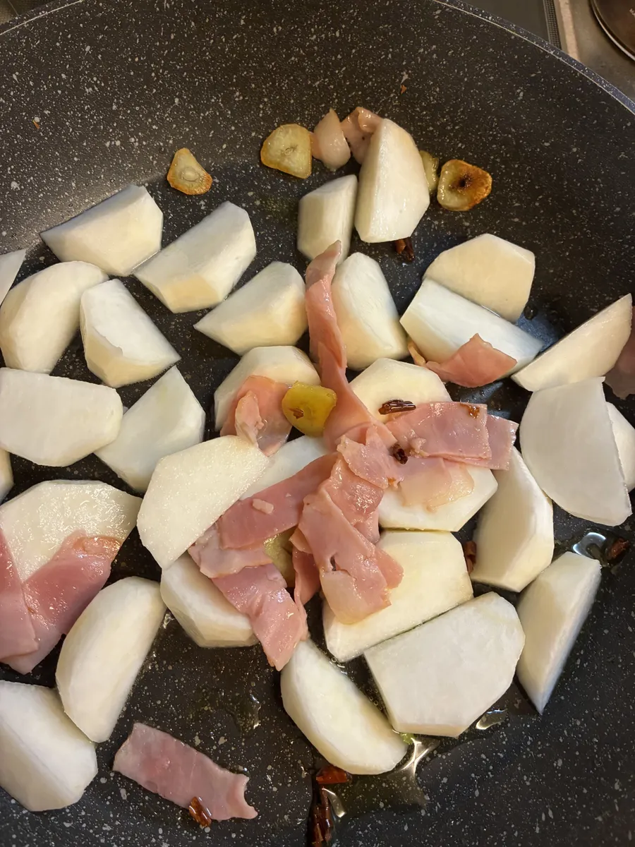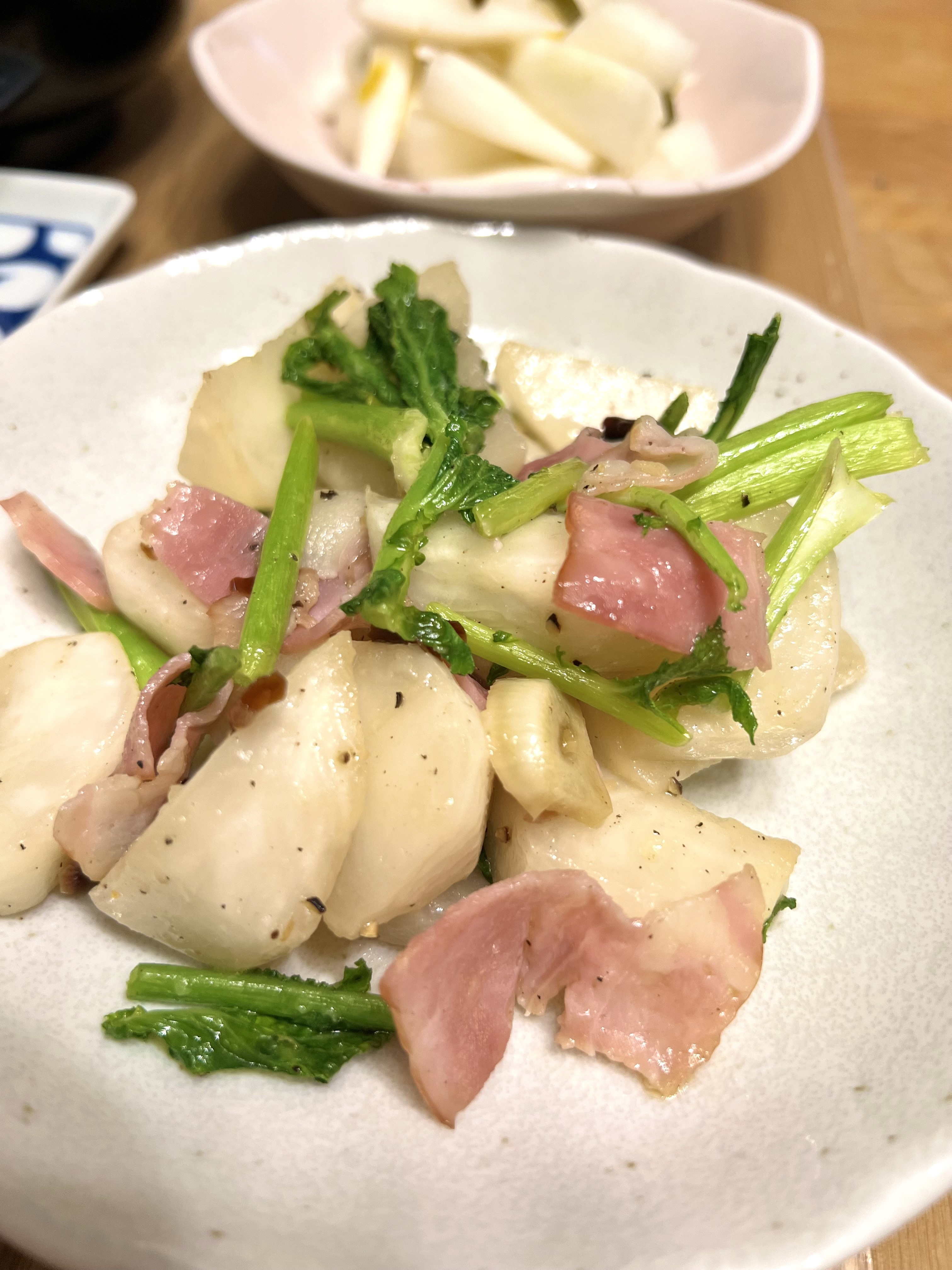 小かぶとベーコンのペペロンチーノ♡