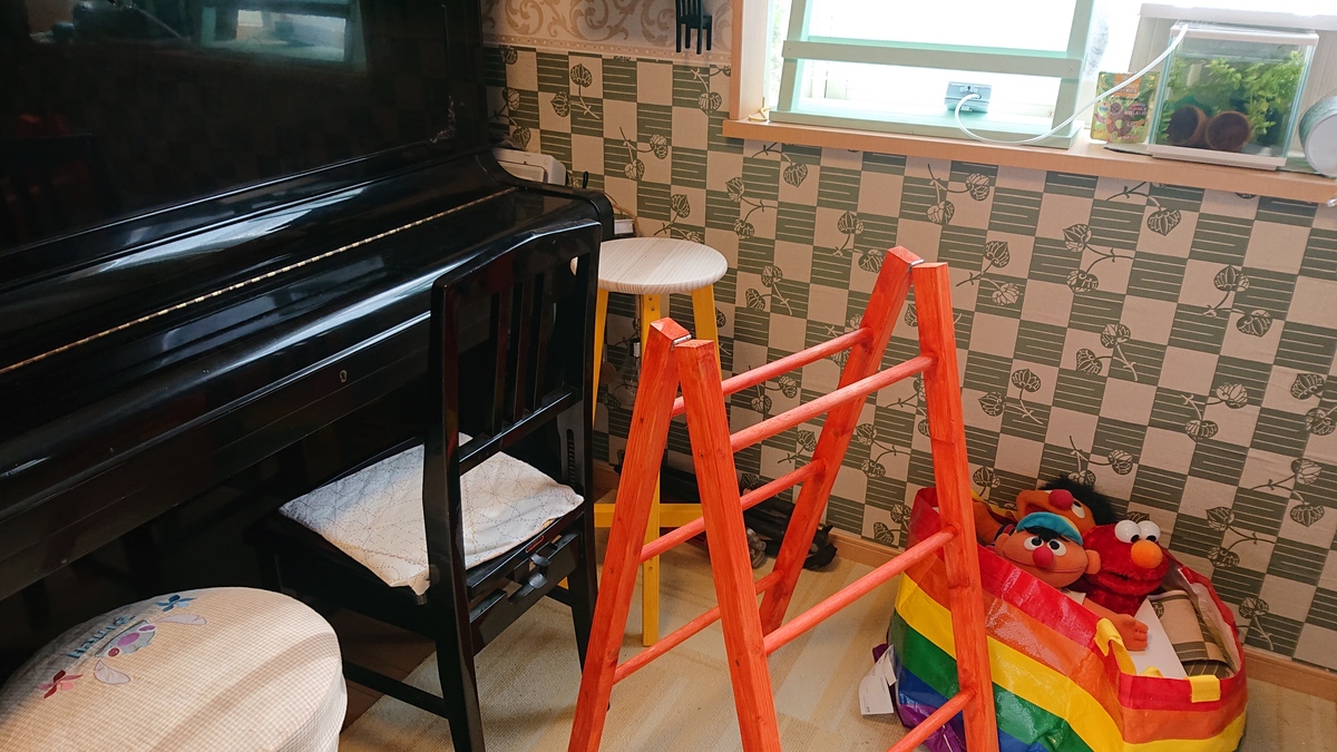 壁の色とラダーの色、エルモたちがすごくマッチしてます🥰ちゃんと地震のことも配慮してあり、その点もナイスです☺️