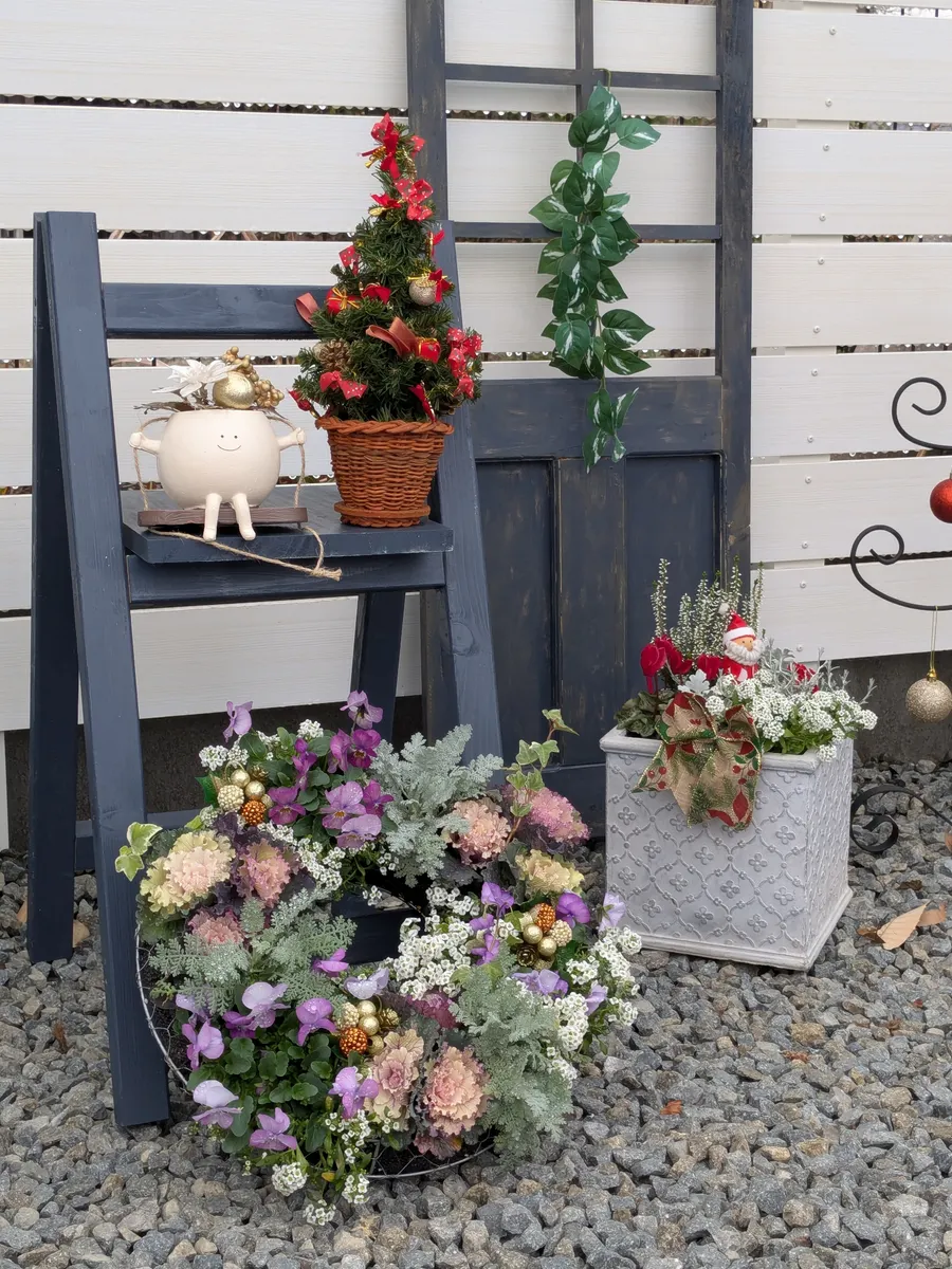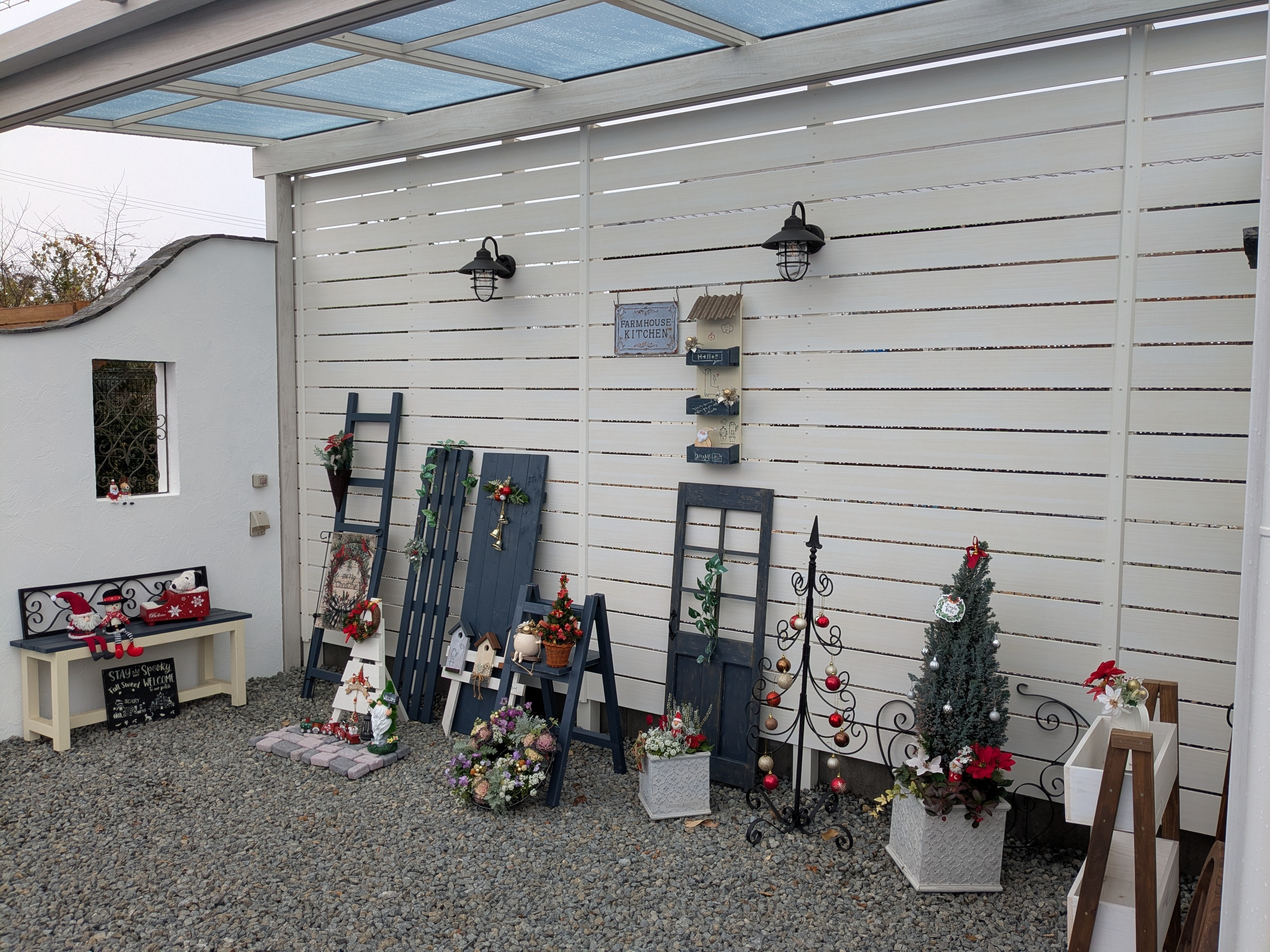 完成されたパーゴラでの素敵なクリスマスのデコレーションですね。😌🌸💕