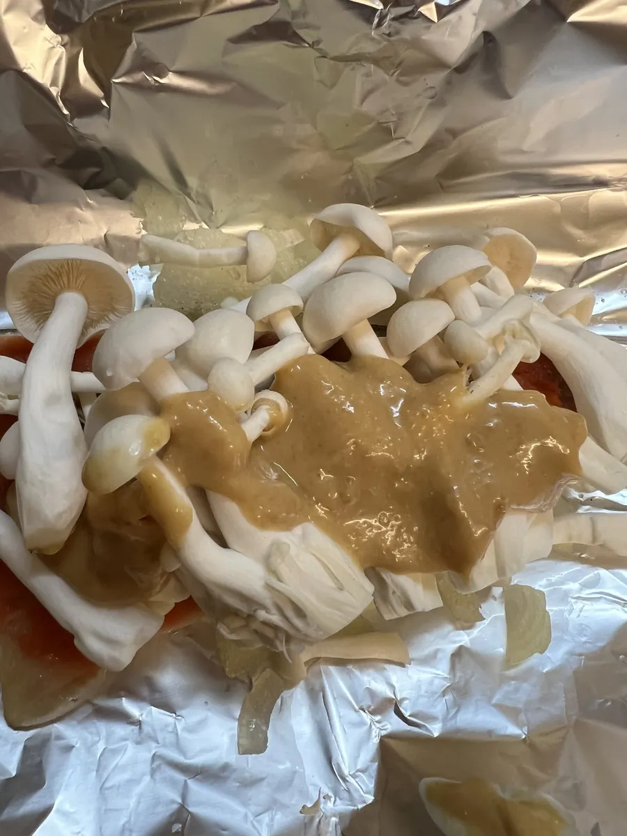 トップ > クッキング レシピ > 料理 > 鮭のホイル焼きちゃんちゃん焼き風 さくら♡ 2025/10/15 07:50 鮭のホイル焼きちゃんちゃん焼き風 ■材料 鮭切り身 タマネギスライス キノコ類なんでも 味噌小さじ1マヨネーズ大さじ1酒大さじ1砂糖小さじ1を混ぜたもの ■作り方 大きめに切ったアルミホイルにタマネギ、鮭、キノコの順に乗せて上からソースをかけてグリルで10〜15分くらい焼く。 同量にしたら、お味噌が少し多過ぎて辛かったです😂火が通ったら最後に少しホイルの口を開けて焼き、焦げ目がついたら出来上がり❣️ ■工夫ポイント グリルまたはオーブントースターにお任せでその間に他の料理が作れます♡ いいね 共有する 共有する X LINE リンクをコピー コメントする 7 件の返信 (新着順) ミュートしたユーザーの投稿です。 投稿を表示 ダンボ 2025/10/21 08:17 とても美味しそうですね! いいね 返信する ミュートしたユーザーの投稿です。 投稿を表示 さくら♡ 2025/10/21 08:20 ダンボ ありがとうございます♪ いいね 返信する ミュートしたユーザーの投稿です。 投稿を表示 べるん 2025/10/18 09:39 味付けも とても美味しそうですね✨ ホイル焼きは、アツアツが続いてくれるのも嬉しいです(^^♪ いいね 返信する ミュートしたユーザーの投稿です。 投稿を表示 さくら♡ 2025/10/18 11:26 べるん 焼いてる間に他のこと出来るのもいいですよね♪ いいね 返信する ミュートしたユーザーの投稿です。 投稿を表示 toshi 2025/10/17 08:49 美味しそうですね ご飯お代わりしちゃいますね😊 いいね 返信する ミュートしたユーザーの投稿です。 投稿を表示 さくら♡ 2025/10/17 08:51 toshi お味噌とマヨネーズは合いますよね😊 いいね 返信する ミュートしたユーザーの投稿です。 投稿を表示 toshi 2025/10/17 09:08 さくら♡ 最高ですね😊 いいね 返信する ミュートしたユーザーの投稿です。 投稿を表示 さくら♡ 2025/10/17 10:17 toshi 簡単なので是非〜❣️ いいね 返信する ミュートしたユーザーの投稿です。 投稿を表示 toshi 2025/10/17 12:23 さくら♡ ありがとうございます😊 いいね 返信する ミュートしたユーザーの投稿です。 投稿を表示 チコリ 2025/10/17 02:33 ちゃんちゃん焼き、美味しそう😋 グリルにお任せの料理は、事前にホイル包むところまで準備しておけば忙しい時に便利ですよね😁 いいね 返信する ミュートしたユーザーの投稿です。 投稿を表示 さくら♡ 2025/10/17 07:31 チコリ 助かりますよね♡😊 いいね 返信する ミュートしたユーザーの投稿です。 投稿を表示 ぱんだ 2025/10/16 10:49 鮭も高騰してますよねー°・🐠 今すぐにでも食べたいッ😍 いいね 返信する ミュートしたユーザーの投稿です。 投稿を表示 さくら♡ 2025/10/16 12:24 ぱんだ もう、何もかも高いよね〜💦 レジでドキドキするわ😱 いいね 返信する ミュートしたユーザーの投稿です。 投稿を表示 どんちゃん 2025/10/15 23:03 秋シャケのちゃんちゃん焼き 美味しいそうです😋 いいね 返信する ミュートしたユーザーの投稿です。 投稿を表示 さくら♡ 2025/10/16 00:36 どんちゃん ご飯と合いましたよ♡ お味噌とマヨネーズって相性良いんです🙆 いいね 返信する ミュートしたユーザーの投稿です。 投稿を表示 マリーモミ 2025/10/15 21:06 作ってみたいと思ったらこちらにレシピがあって🤣👍 味変ができて😁 いいね 返信する ミュートしたユーザーの投稿です。 投稿を表示 さくら♡ 2025/10/15 21:21 マリーモミ 見て頂いてありがとうございます😊 お味噌の味が結構強くて写真みたいに同量にしたら辛かったので、レシピの分量は訂正していまーす❣️ いいね 返信する ミュートしたユーザーの投稿です。 投稿を表示 マリーモミ 2025/10/15 21:23 さくら♡ 🫡です いいね 返信する