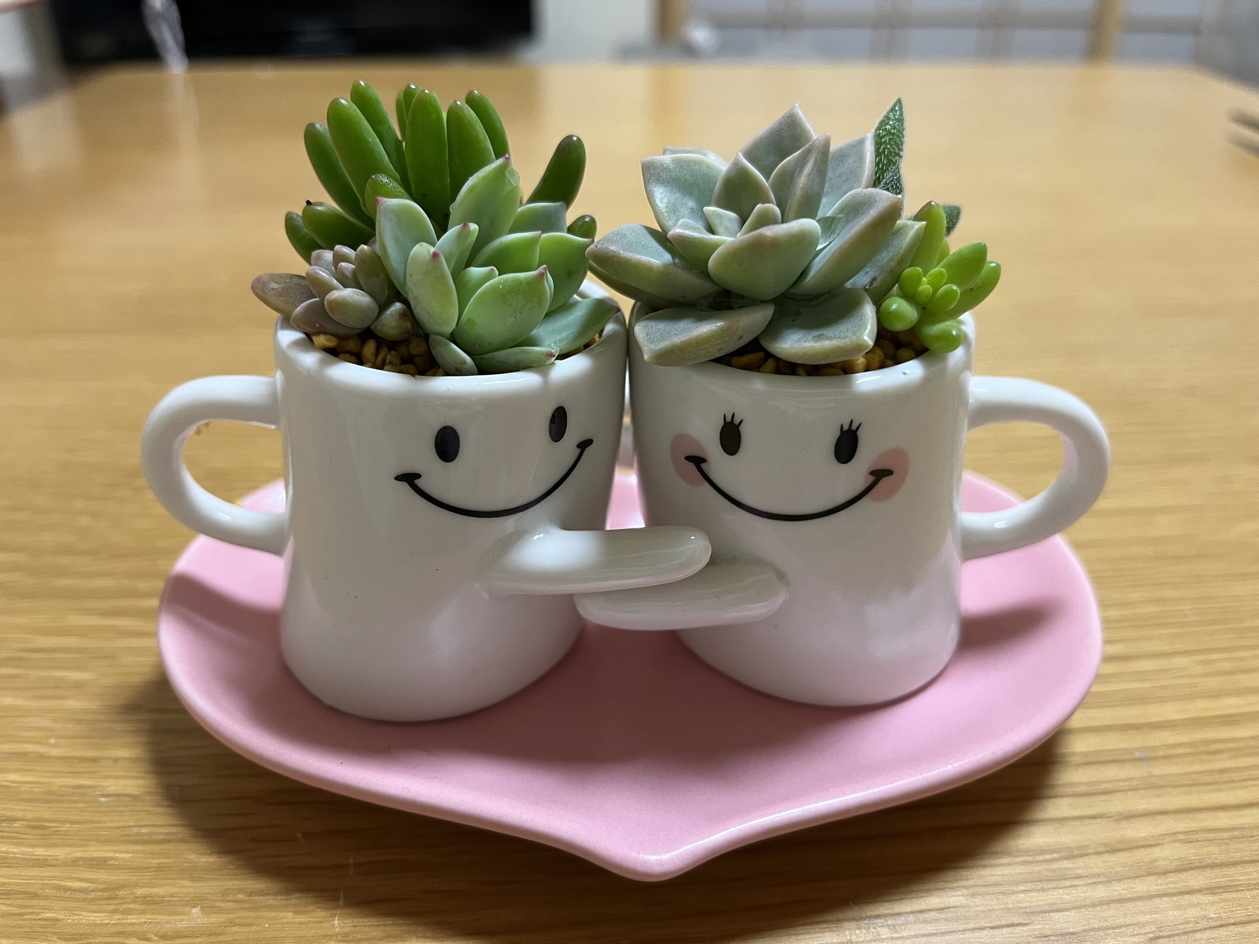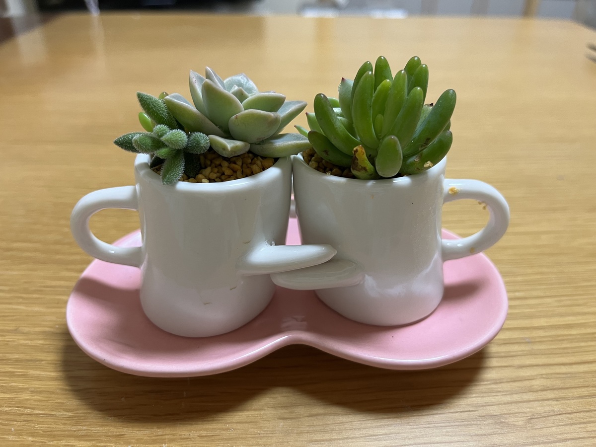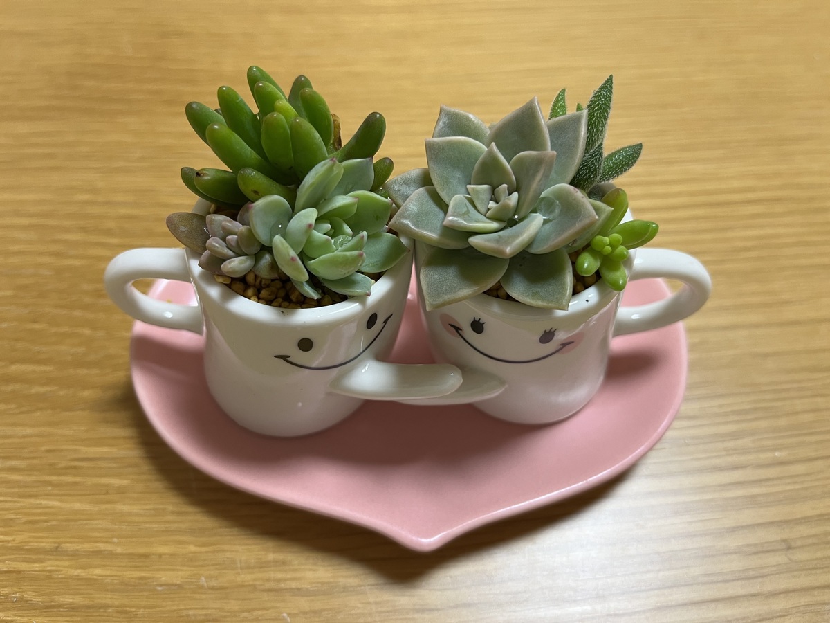 投稿を表示仲良しさんの笑顔と、手を取り合った姿が可愛らしい、素敵なミニ多肉さんのプレゼントですね💞