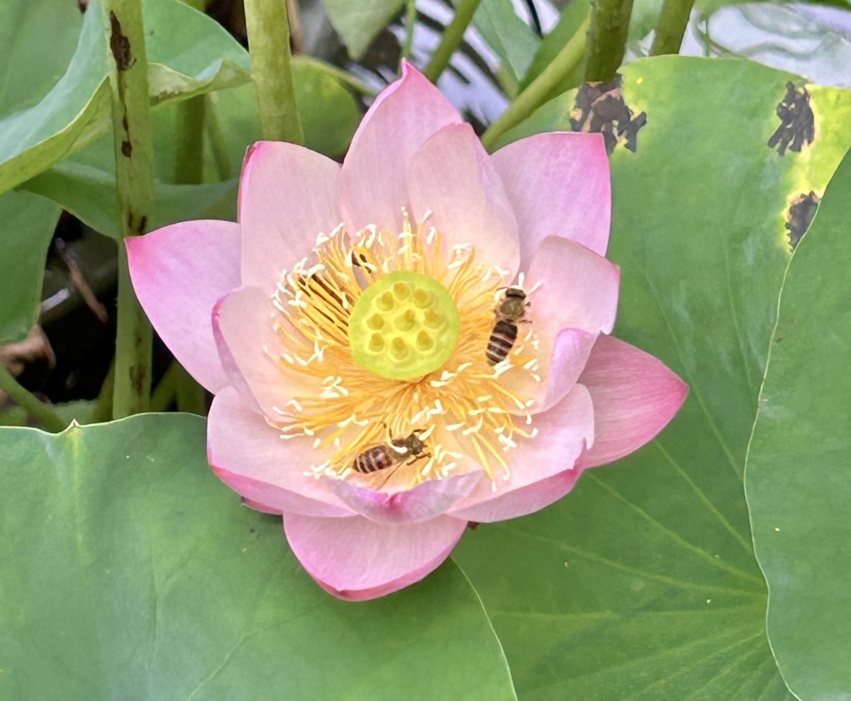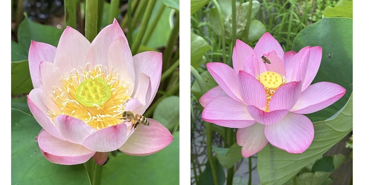 投稿を表示こんなに大きさ違うんですね。花も可愛いけど、ミツバチもかわいいです🪷🐝