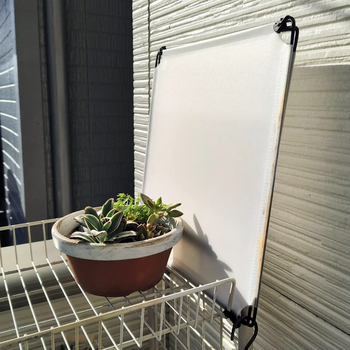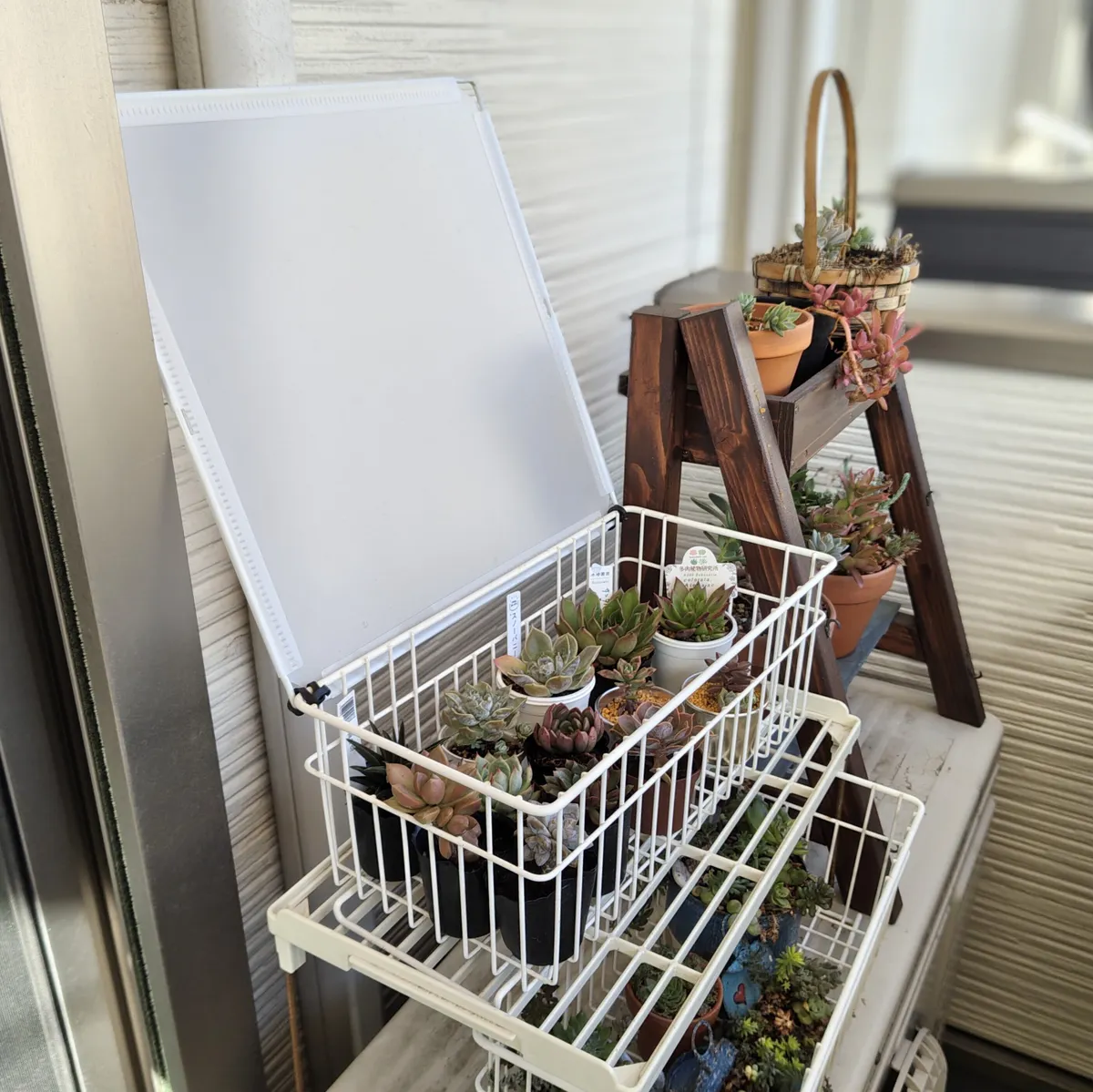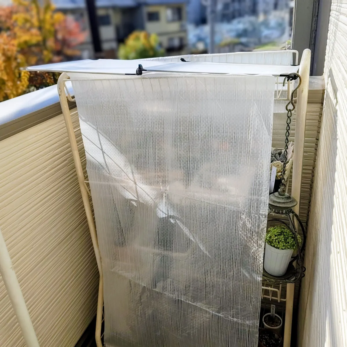 簡単・安価で、ベランダ多肉の日除け、雨除け、さらに寒さ避けをかなえる方法です☺️