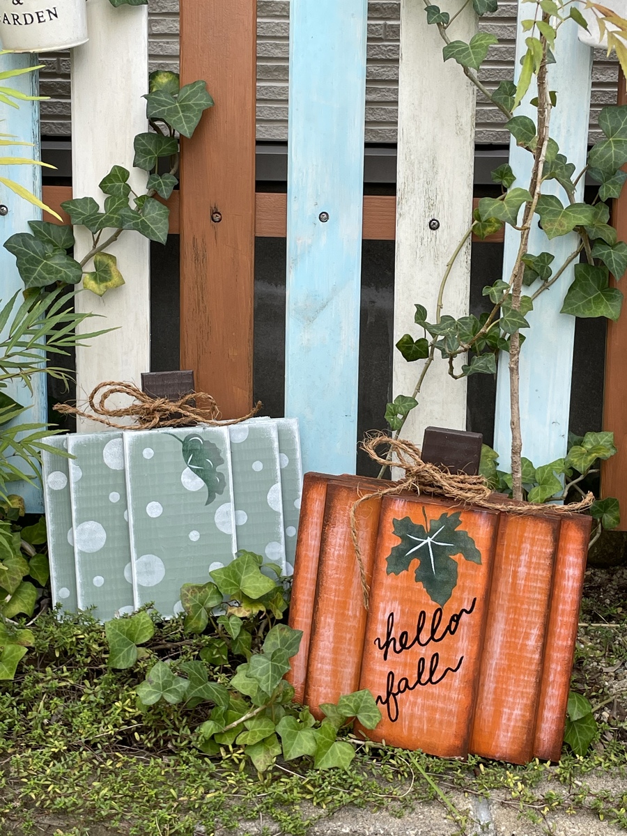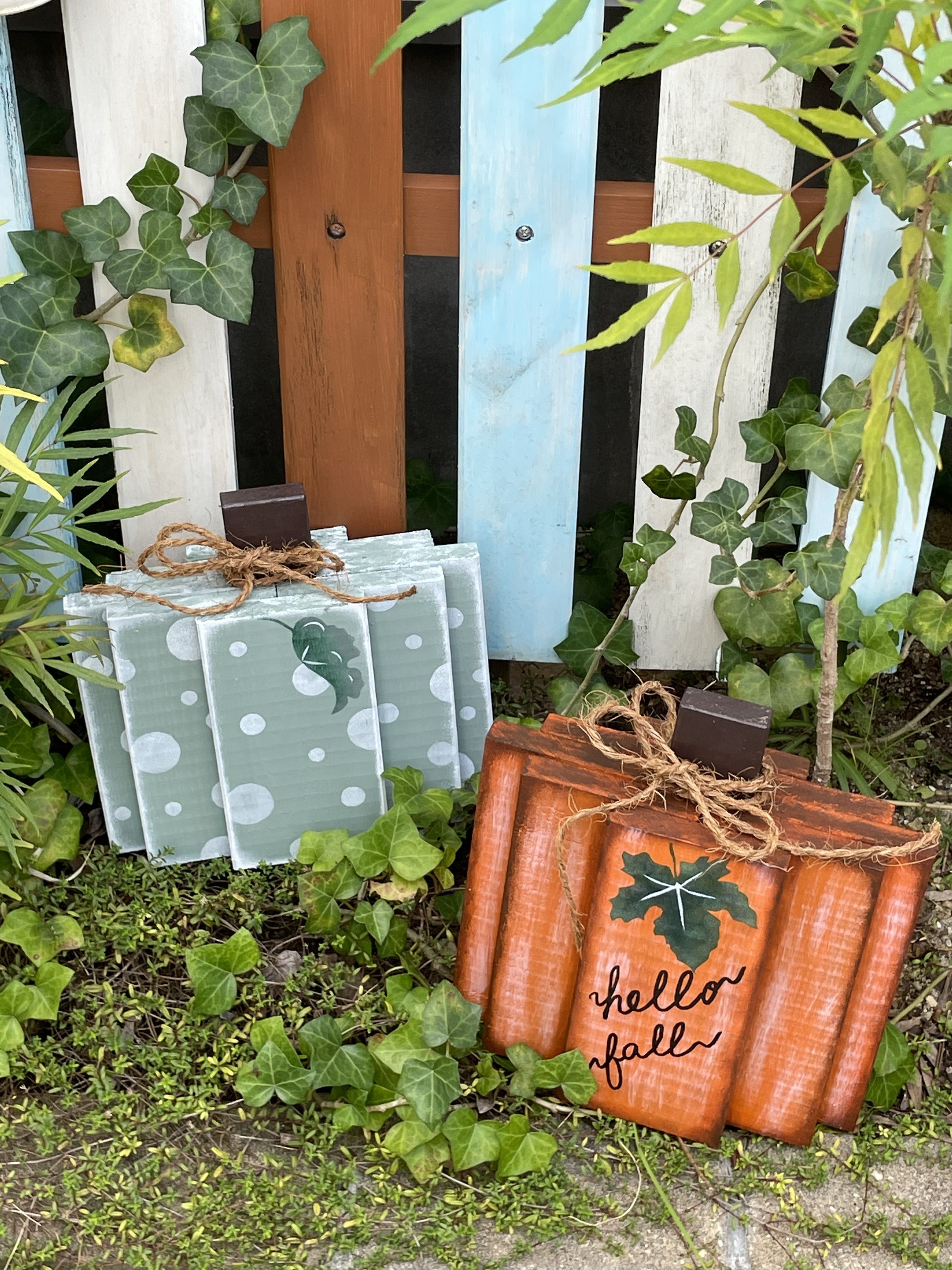 申し訳ない状態にしてしまった端材達も可愛いかぼちゃになってお庭のアクセントになりました💕
