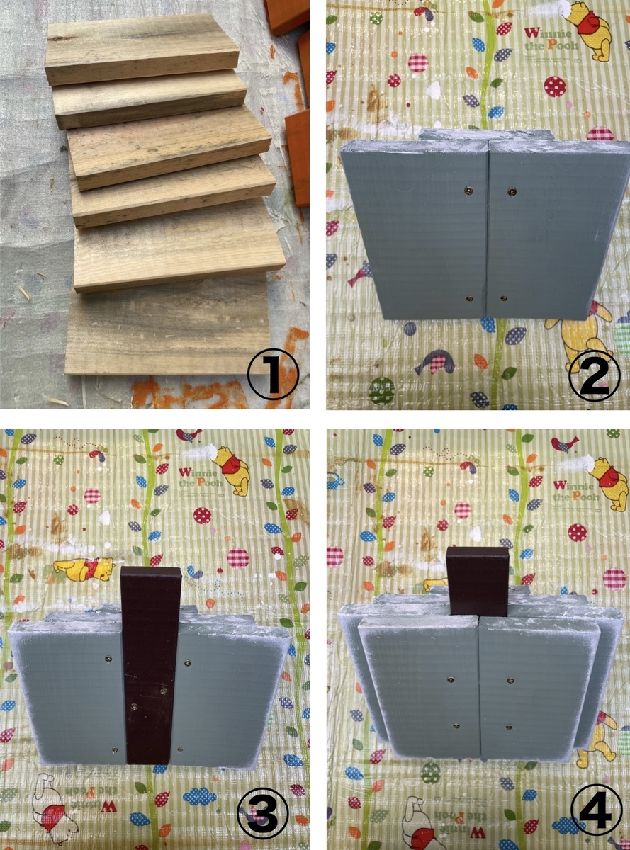 この夏に何本かの端材をウッドデッキに置き忘れて寝て翌朝、雨に打たれる端材達を見て😫やってしまったー💦と反省…濡れた端材を室内に入れたくなくて、そのまま放置…結果カビるよね…| 壁 |д・)💦