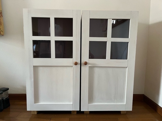 扉の取手は、前回作ったのと同じ場所に付けたかったので自宅で取り付けました。