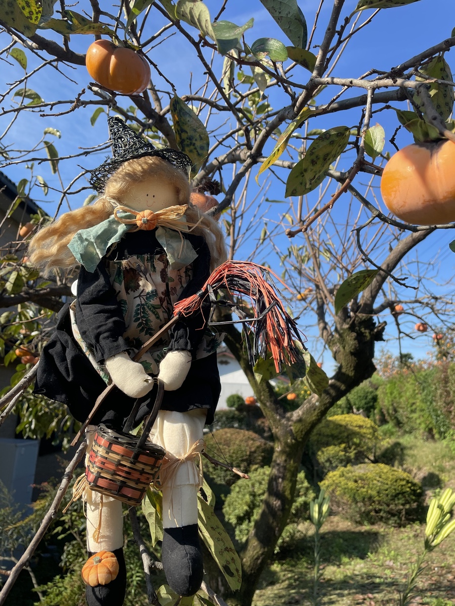 魔女と柿の木と青い空が良い感じです😄