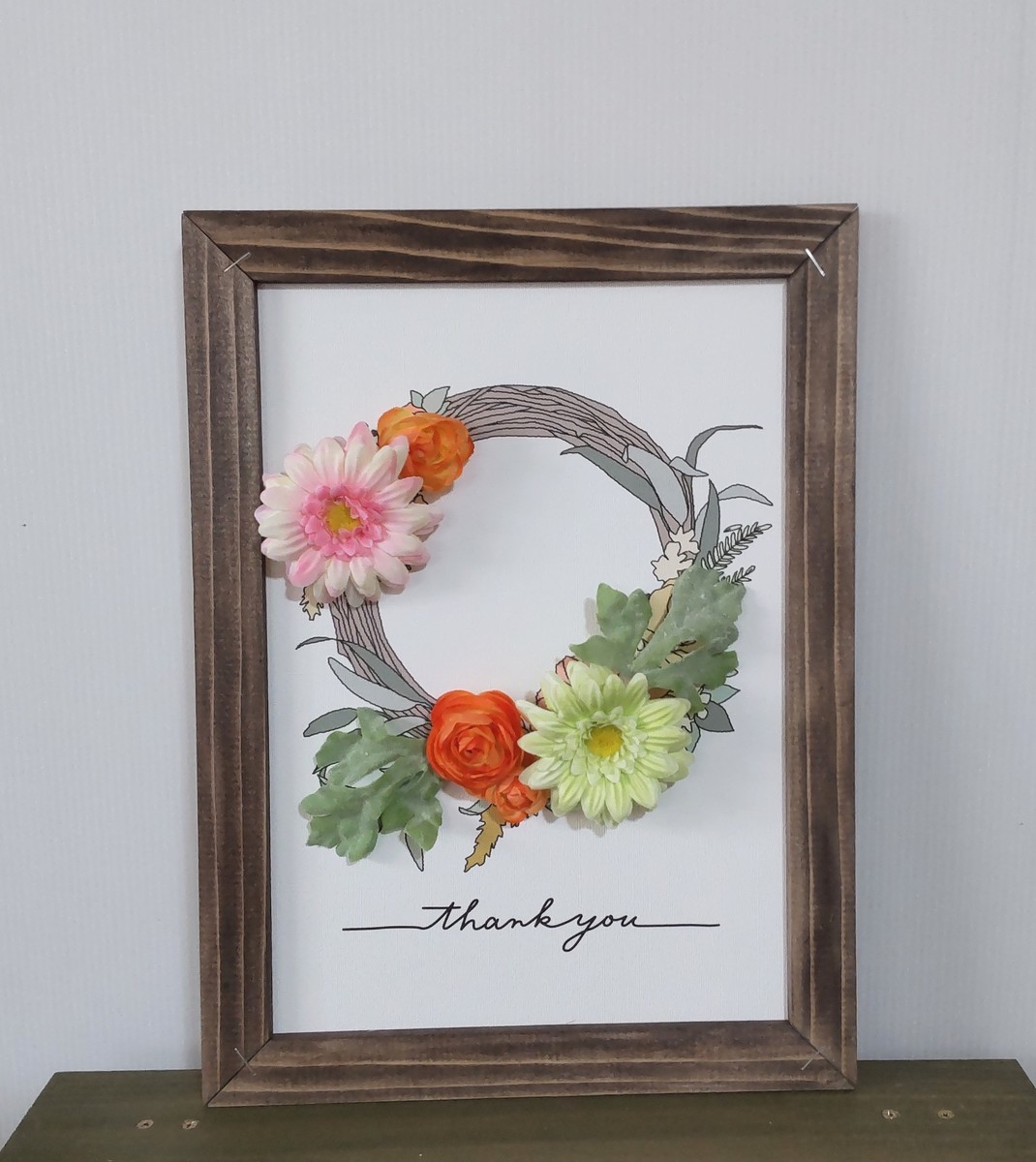 下絵があるので その上にドライフラワーをグルーガンでつけるだけです😁