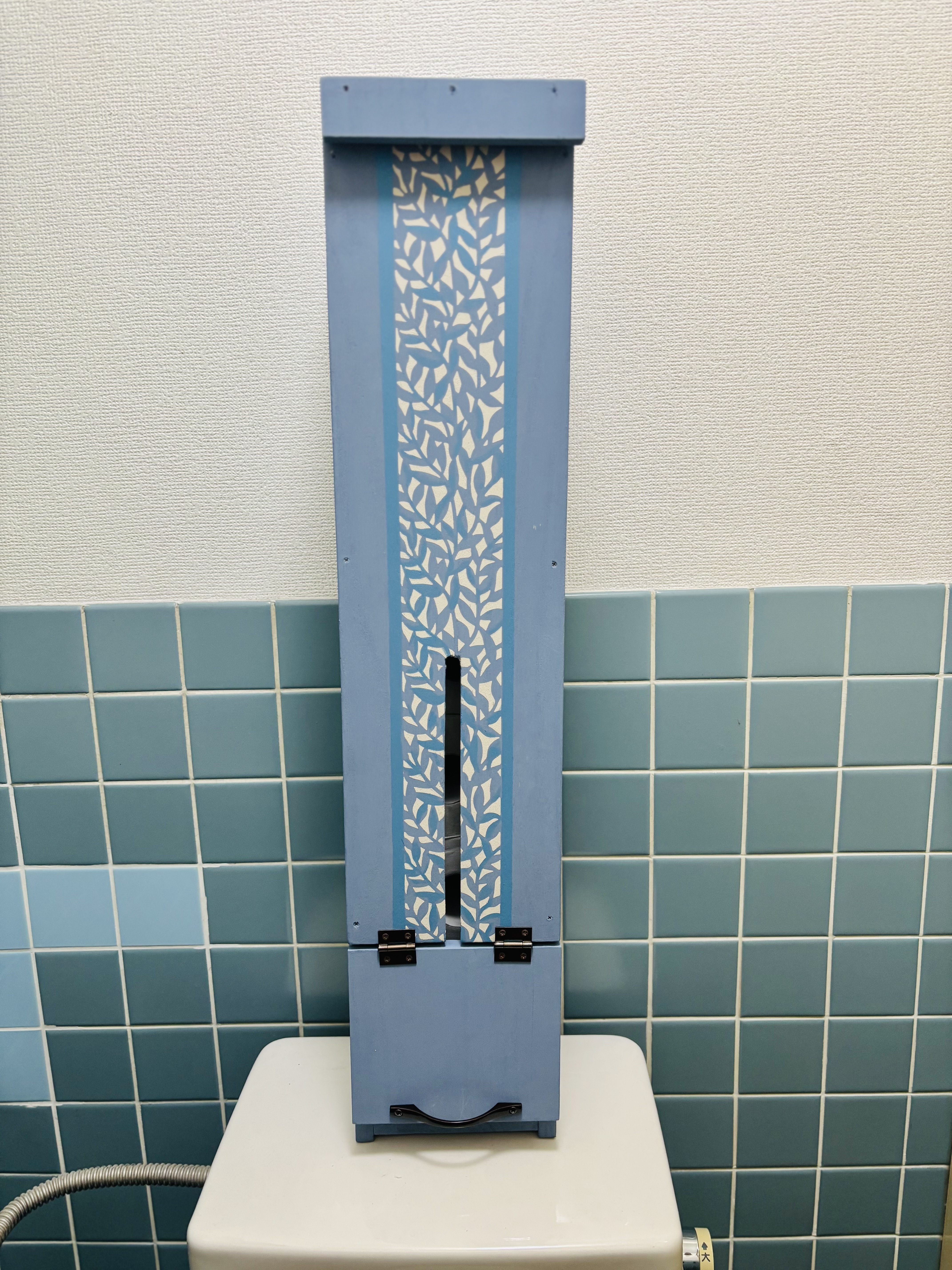 新色のブルー(名前を忘れました)自宅に帰ってステンシルしたのはいいけど、蝶番のネジを紛失して放置。