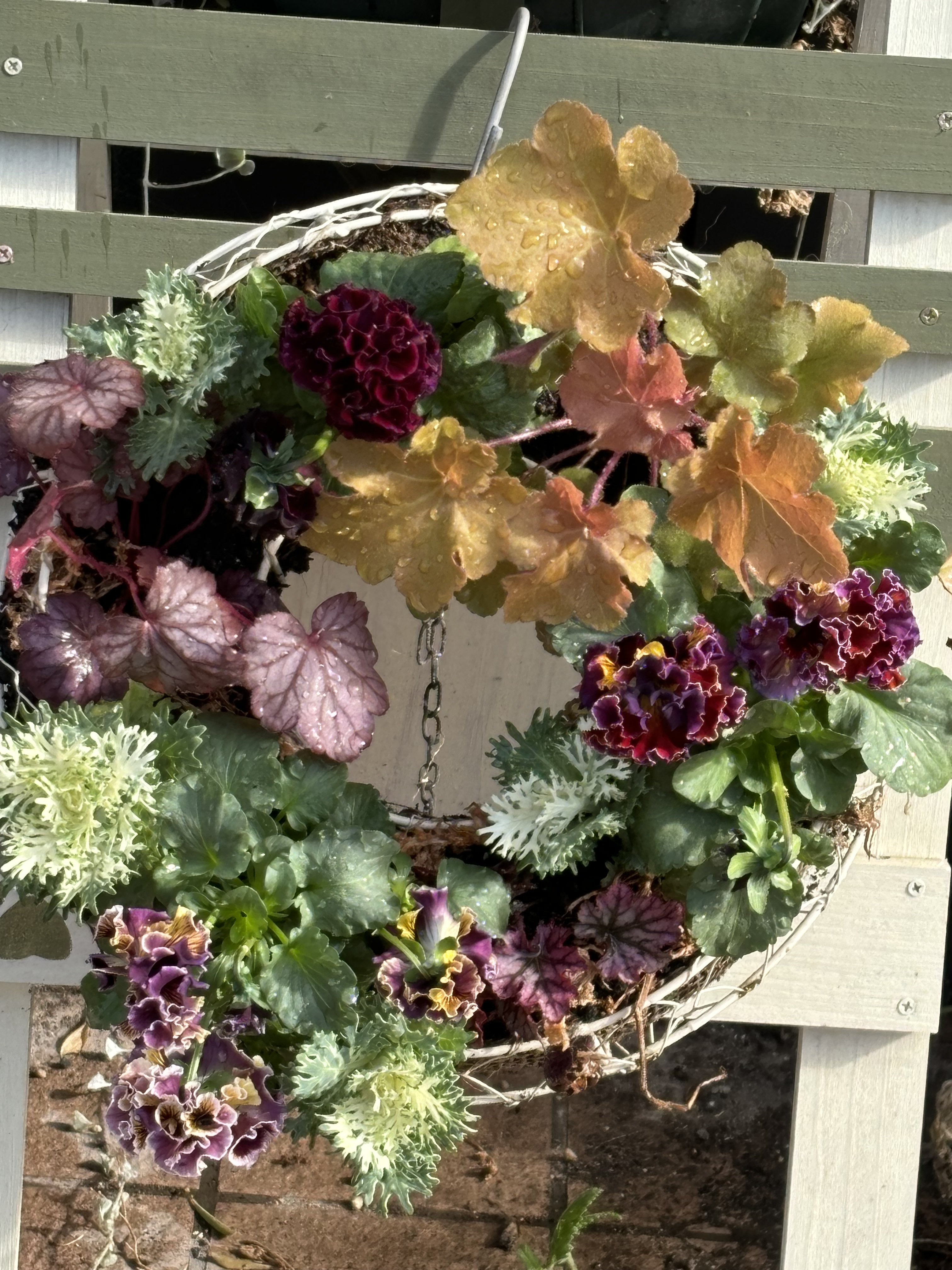 ヒューケラと葉牡丹との色合いが素敵ですね😊