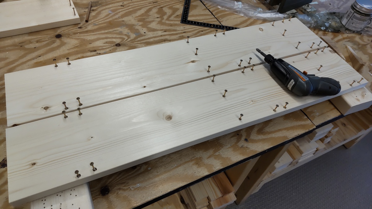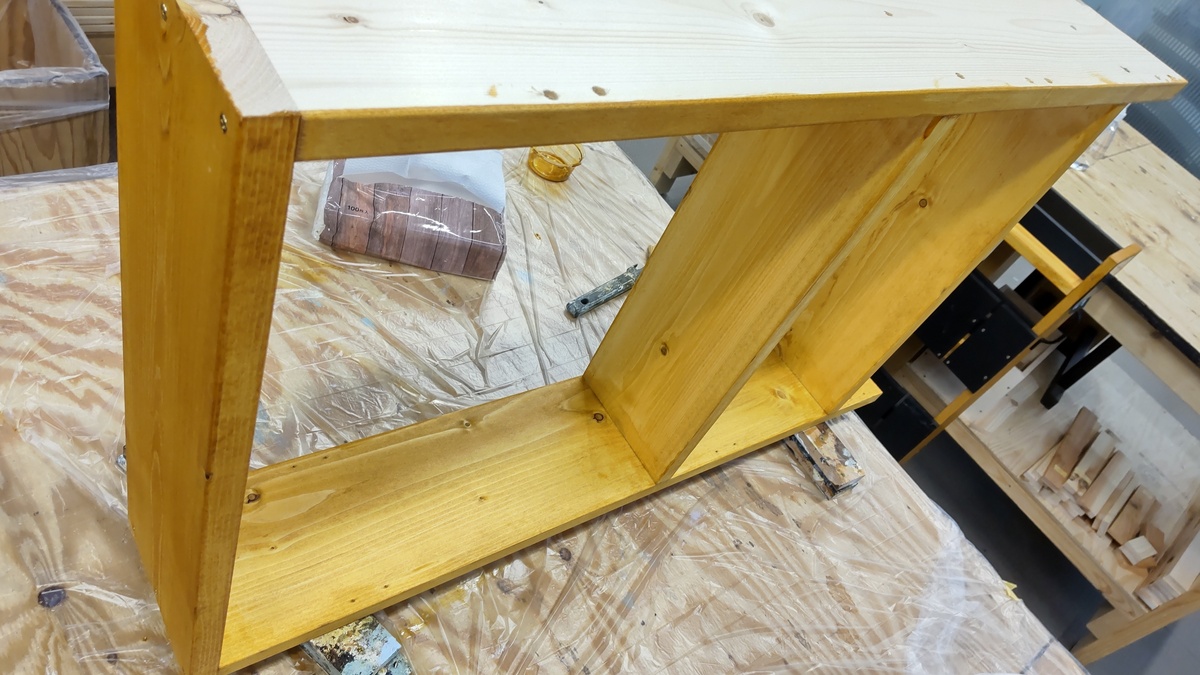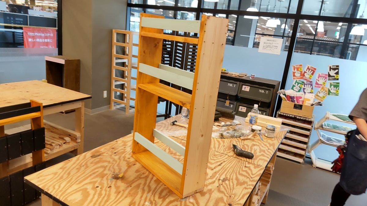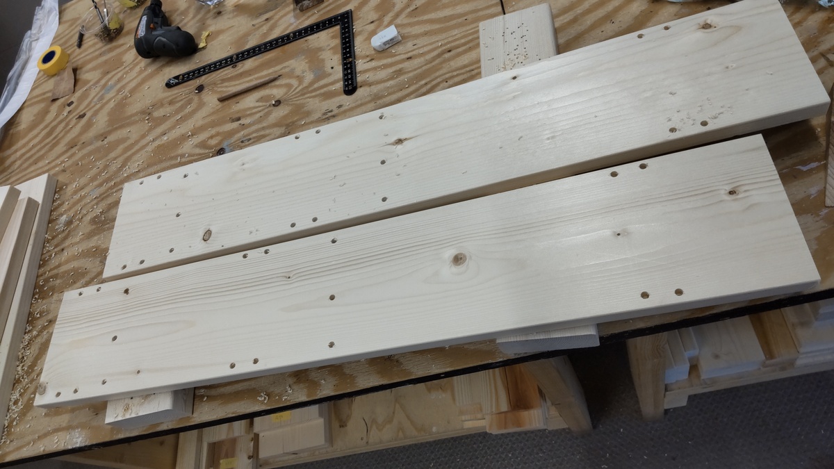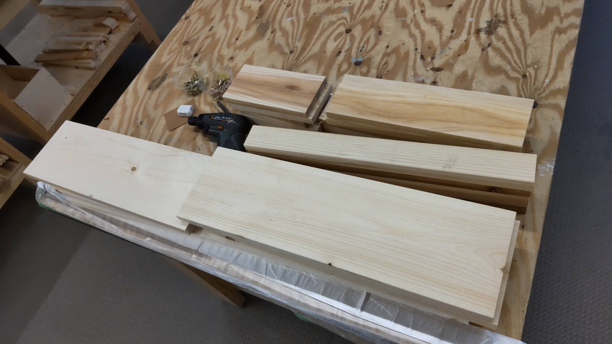 ダボするときは、作業台から隙間ワゴン下ろしたほうが、作業しやすかったかも!?