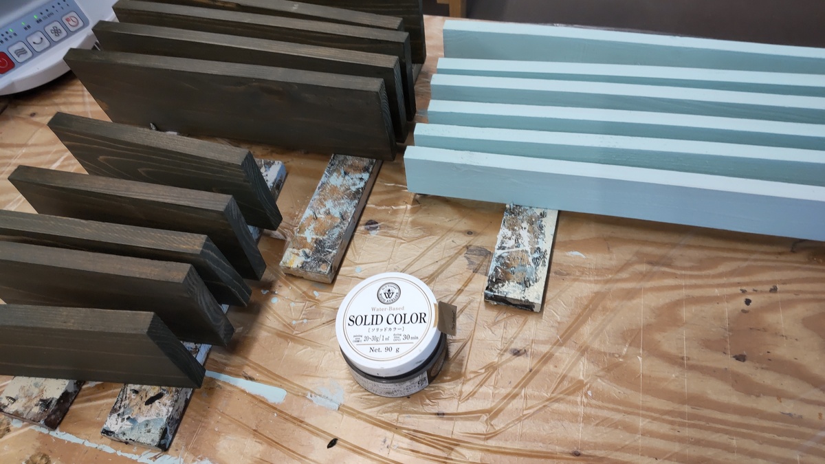 選ばれし色は、持込のオリーブグリーンと店舗用意のミントグリーンです。