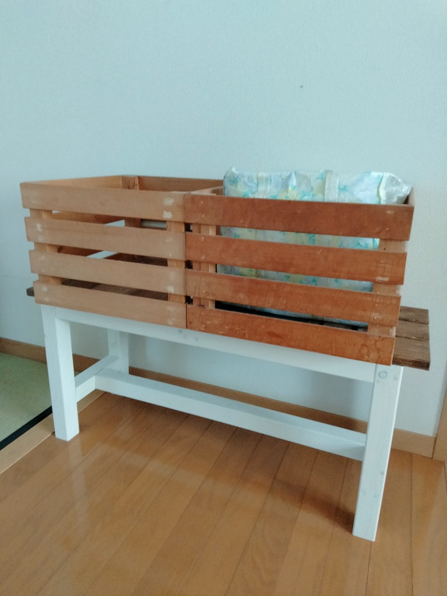 うちの新聞入れと資源古紙入れが、ずっと床に置いてあり、掃除するのにいちいち動かしていた問題が解決しました👍 20年以上前の木箱だから、そろそろ色を変えようかな…。年季が入っております。
