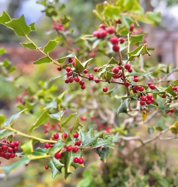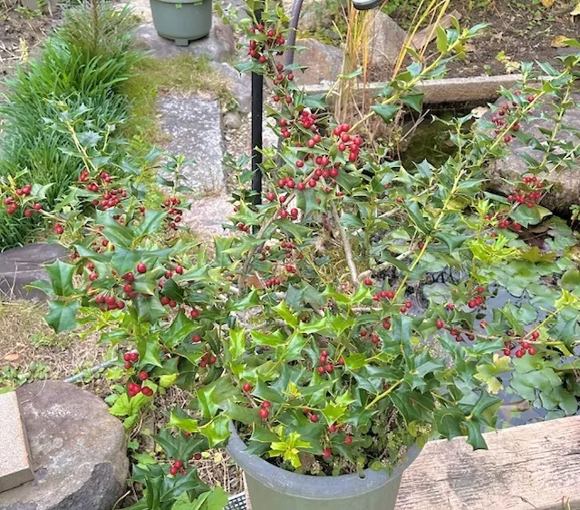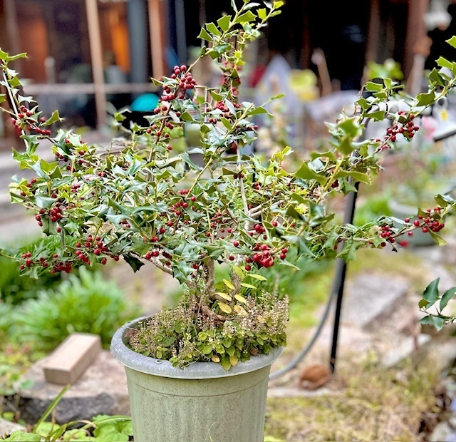 いやもちろんホーリーさんも頑張ったんだけど、一番頑張ったのはシダーローズさんですよね✨3年お世話してここまでに仕上げて素晴らしい、赤い実も可愛いです🎄