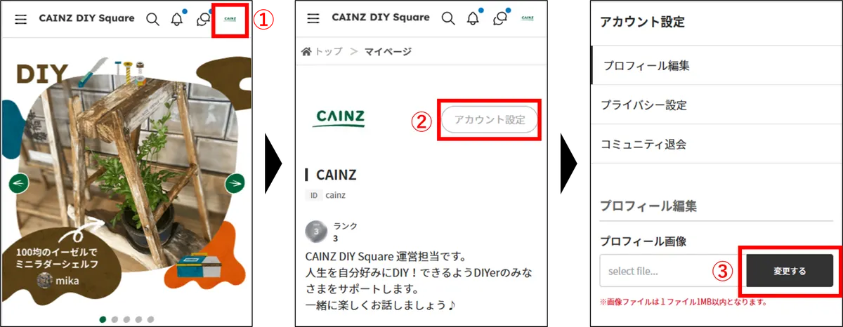 CAINZ DIY Squareへの登録が完了したら、プロフィールを設定してみましょう!