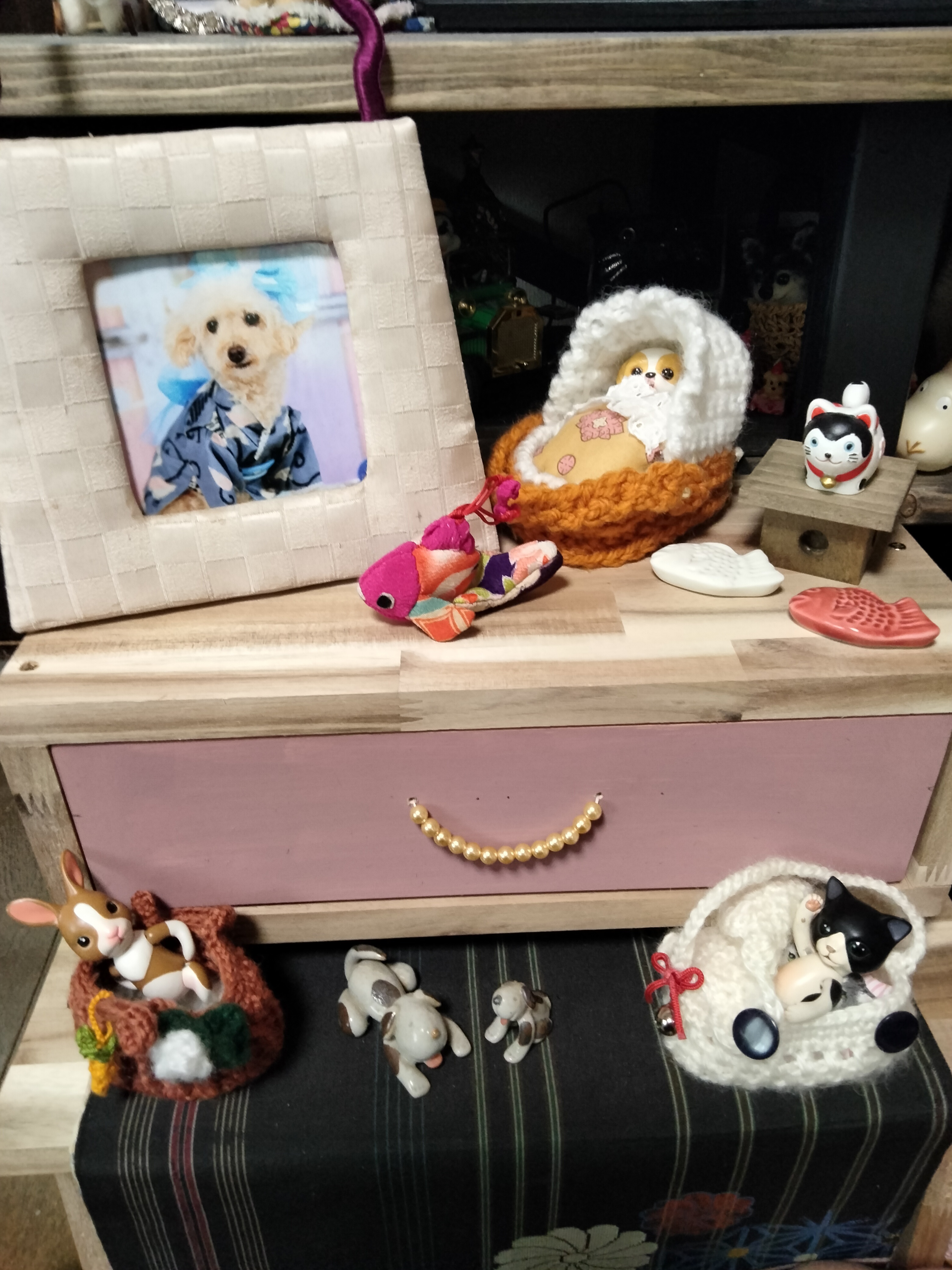 トップ > ワークショップ > 小物・雑貨 > 昨日はアカシアミニシェルフWSでした💕 ふくちゃん 2026/03/07 10:04 昨日はアカシアミニシェルフWSでした💕 前に作ったアカシアミニ踏み台の上にのせてディスプレイスペースが増えました…クミモクのサイズピッタリBOXを購入色塗りとパールの取手アレンジしました🩷 表板にドリル2・5ミリの穴を開けて針と糸でパールの取手取付完了💕 収納BOXもおしゃれに成ってピッタリサイズ💕 春に始める模様替えDIY いいね 共有する 共有する X LINE リンクをコピー コメントする 3 件の返信 (新着順) ミュートしたユーザーの投稿です。 投稿を表示 パール 2026/03/08 16:26 サイズピッタリで渋めのピンクの引き出しとパールと把手がお洒落で可愛いですね😉💕🎵 いいね 返信する ミュートしたユーザーの投稿です。 投稿を表示 ふくちゃん 2026/03/08 17:33 パール パールさんありがとうございます…一緒に参加の皆さんもBOX仕上りにサイズ合わせして購入していました…3個残ってたBOX合わせてみて1番ジャストサイズの個お迎えしました🩷 いいね 返信する ミュートしたユーザーの投稿です。 投稿を表示 まろん 2026/03/08 07:30 ピンク🩷がパッとして良いね😊 可愛い🩷くなったね🎶 いいね 返信する ミュートしたユーザーの投稿です。 投稿を表示 ふくちゃん 2026/03/08 08:28 まろん まろんさんありがとうございます…持っている塗料使用するのでつい好みの色に成ってしまいます🩷 いいね 返信する ミュートしたユーザーの投稿です。 投稿を表示 はっちゃん 2026/03/08 12:54 まろん 素敵 いいね 返信する ミュートしたユーザーの投稿です。 投稿を表示 まろん 2026/03/08 20:30 はっちゃん ふくちゃん🩷の作品は いつも可愛い🩷ね😊 いいね 返信する ミュートしたユーザーの投稿です。 投稿を表示 ゆり 2026/03/07 21:21 ふくちゃんさんWSではお世話になりました😊 アレンジ早いです~✨ 色も可愛いしパールの取っ手がおしゃれですね😆‼️ いいね 返信する ミュートしたユーザーの投稿です。 投稿を表示 ふくちゃん 2026/03/07 22:07 ゆり ゆりさんありがとうございます昨日帰ってすぐBOX色塗りして乾かして置いて今日穴あけパールは手芸道具に何時も入って居るので大きさ選んで針に補強の為4本糸通してたま結びして留めた作業なので5分位で取手完成…金具しまい忘れて見つからなかったのでパールと糸は出っ張らないからかえって良かったかもです✌️ いいね 返信する