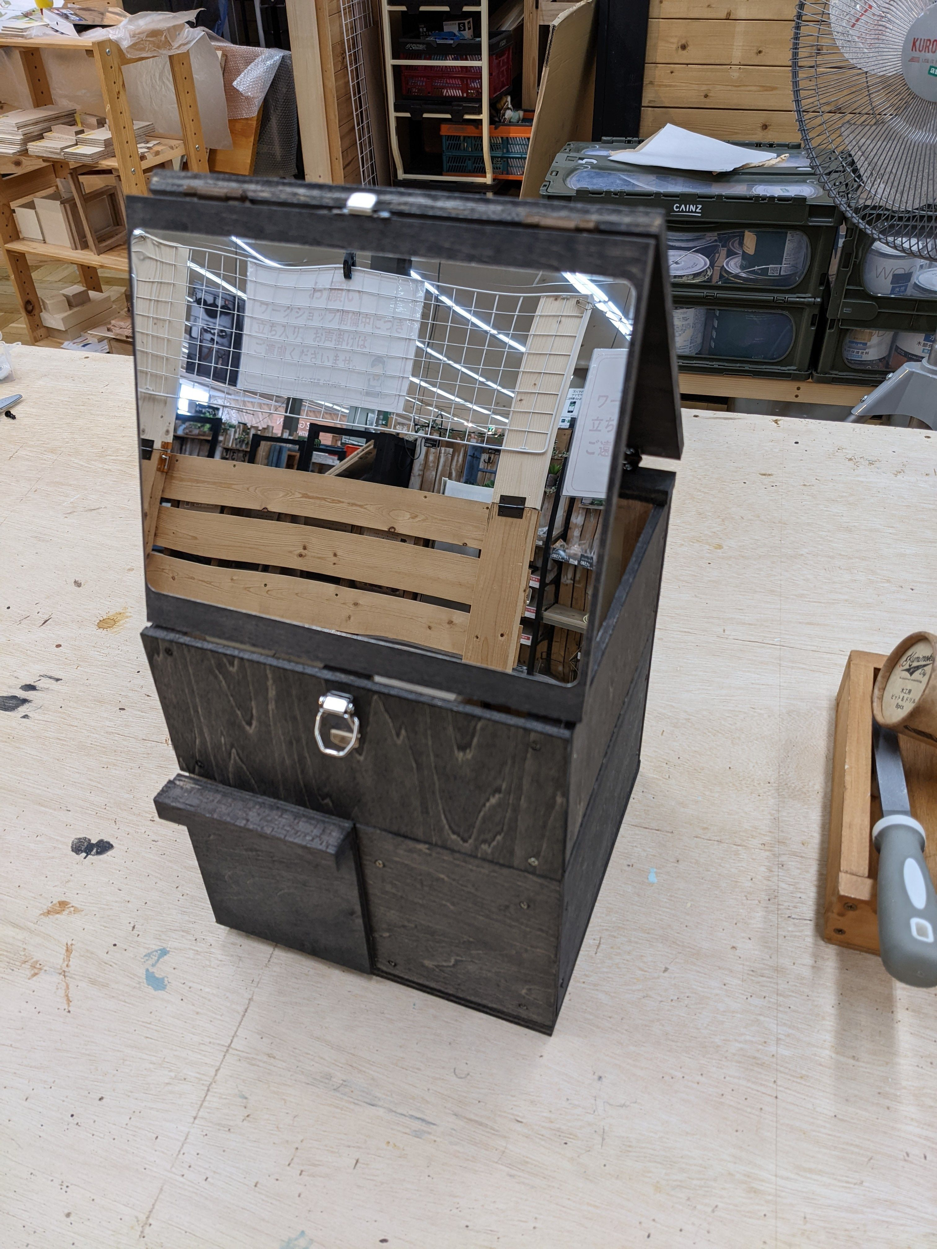 トップ > その他 > 持ち運びできる化粧箱 おひで 2022/03/07 14:17 持ち運びできる化粧箱 今日はホームから離れて浜松雄踏店でws。化粧箱を作りました。色は黒にしましたが、木目が出ていい仕上がり。 いいね 共有する 共有する X LINE リンクをコピー コメントする 8 件の返信 (新着順) ミュートしたユーザーの投稿です。 投稿を表示 ねこニャン 2022/03/08 09:08 黒は木目がでて 焼杉みたいで素敵ですね。 高級感ありありです。 この化粧箱 作りたい作品なんです。 ただ 娘のリクエストNo.1なので とられることは 確定なんですが・・・😔 いいね 返信する ミュートしたユーザーの投稿です。 投稿を表示 ハリー 2022/03/08 08:36 えっ🤯浜松雄踏店で参加されてたんですね😲午前中ちょっとカインズに買い物に行き、工房でWSやってるなぁって思ってちょっと覗いてました👀マイストアはどちらなんでしょう? この色いい色で、木目綺麗に出てますね👍 いいね 返信する ミュートしたユーザーの投稿です。 投稿を表示 おひで 2022/03/08 08:47 マイストアは吉田です。どちらも教えてくださる方が熱心でとても感じがいいですよ! いいね 返信する ミュートしたユーザーの投稿です。 投稿を表示 ハリー 2022/03/08 13:26 吉田店ですか、浜松からだと1時間ちょっとくらいで行けますね、吉田店WSの回数と、大作が多いなぁって思ってました。 いいね 返信する ミュートしたユーザーの投稿です。 投稿を表示 わいず 2022/03/07 19:22 素敵なのが出来ましたね😊いいなぁ😍 いいね 返信する ミュートしたユーザーの投稿です。 投稿を表示 Beni 2022/03/07 19:12 おひでさん、木目が綺麗に出てて、ステキですね💕 いいね 返信する ミュートしたユーザーの投稿です。 投稿を表示 みんみん 2022/03/07 16:32 お化粧をする時に、姿勢を正してかしこまってしまうくらい、とても高貴なステキなお化粧箱ですね✨ 私の近くの店舗でもやってほしいです😥 いいね 返信する ミュートしたユーザーの投稿です。 投稿を表示 asa 2022/03/07 16:10 すごい✨ こんなのがあるんですね! かわいいけど、作るの大変そうですね😅 いいね 返信する ミュートしたユーザーの投稿です。 投稿を表示 シダーローズ 2022/03/07 15:58 こんなの作れるんですか?もうほとんど職人じゃ無いですか! いいね 返信する ミュートしたユーザーの投稿です。 投稿を表示 べるん 2022/03/07 14:28 初めて拝見しました😀 形も楽しそうな素敵な化粧箱ですね✨ いいね 返信する