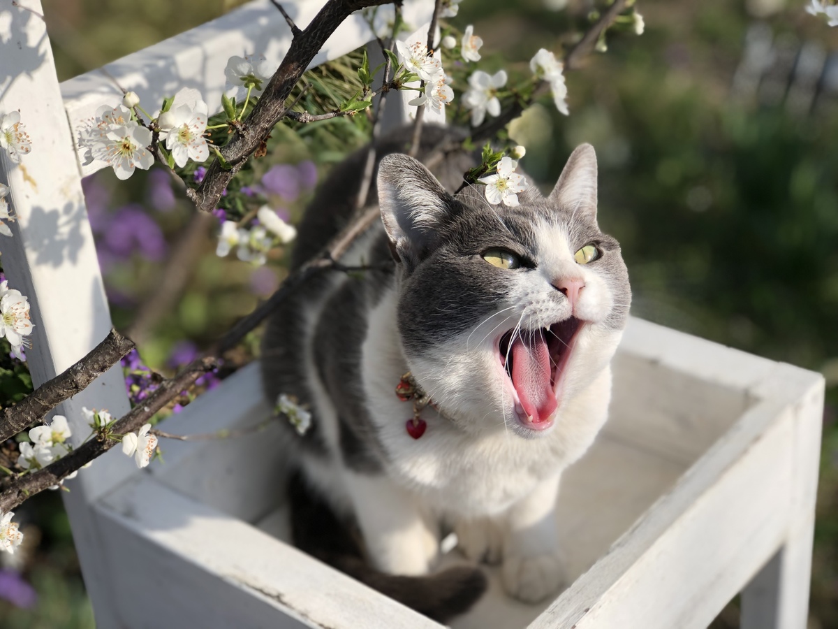 にゃんこさんの大きなアクビのどかで平和な風景ですね。💕