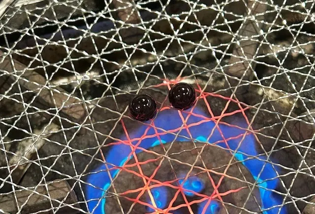 五徳の上に網を置き、ビー玉を置いて中火で3分焼いて