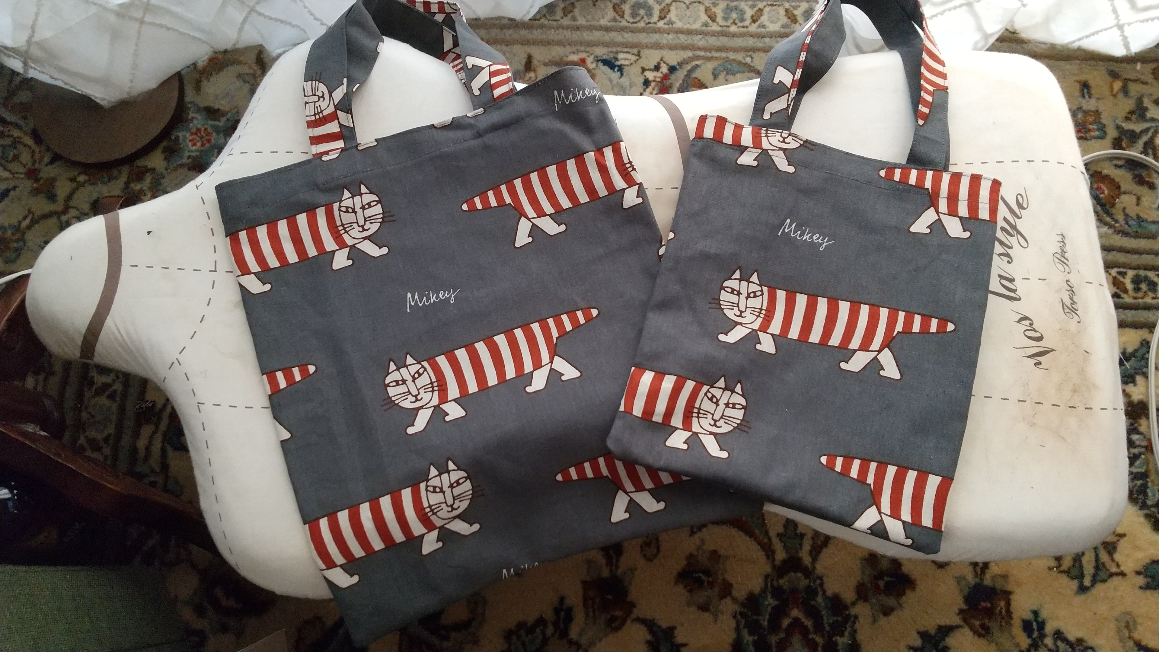 しましまねこちゃん柄が、かわいいトートバックですねぇ✨(人´ω`)