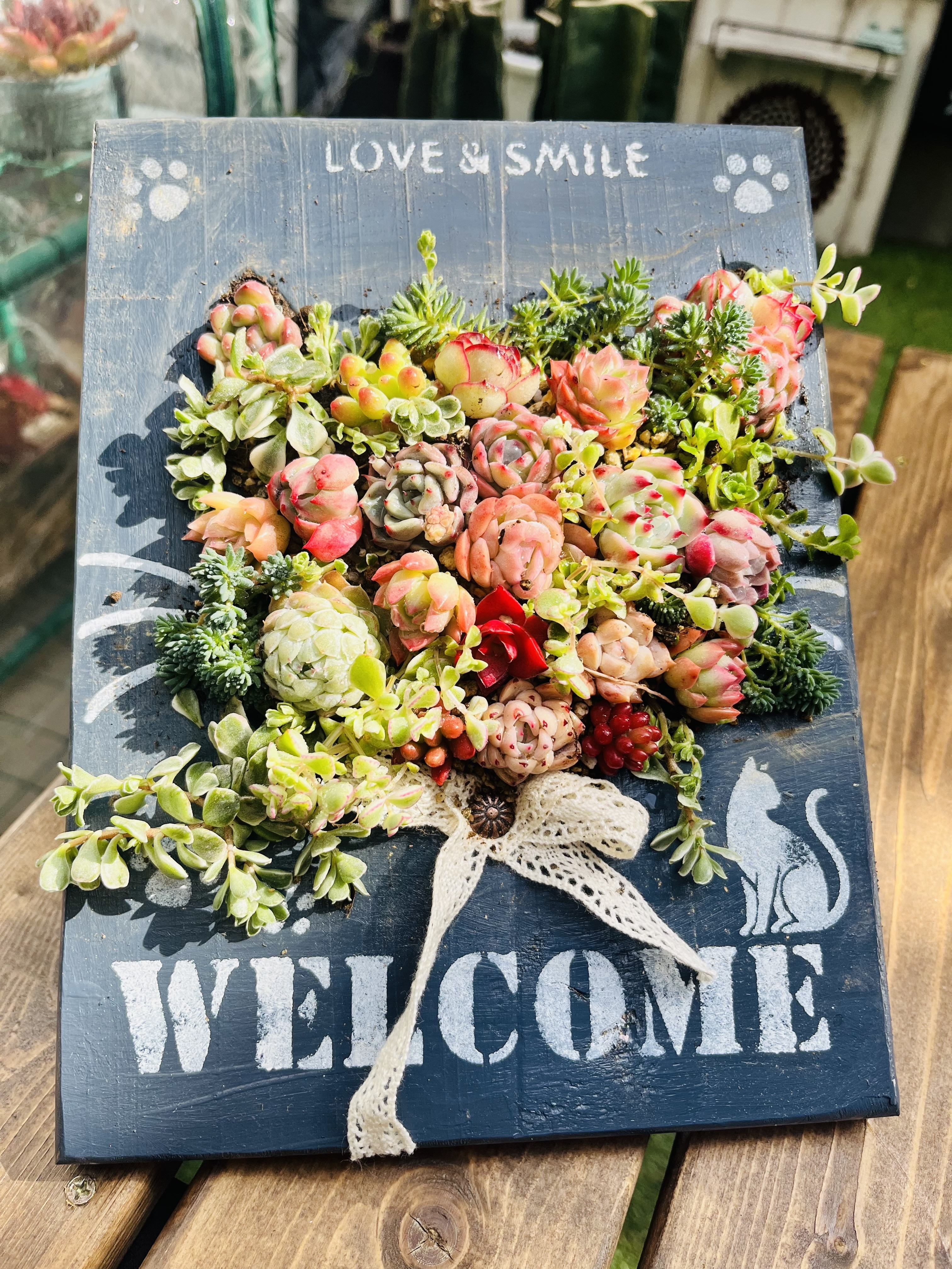 投稿を表示糸鋸で丁寧にネコ型を抜いた額に寄植え素晴らしい!!👍額縁とネコの輪郭にも綺麗に丸くトリマーかけて、多肉植物にも優しい仕様に感服です😄💕スタンドも付いて、至れり尽くせりとはこのこと!!✨