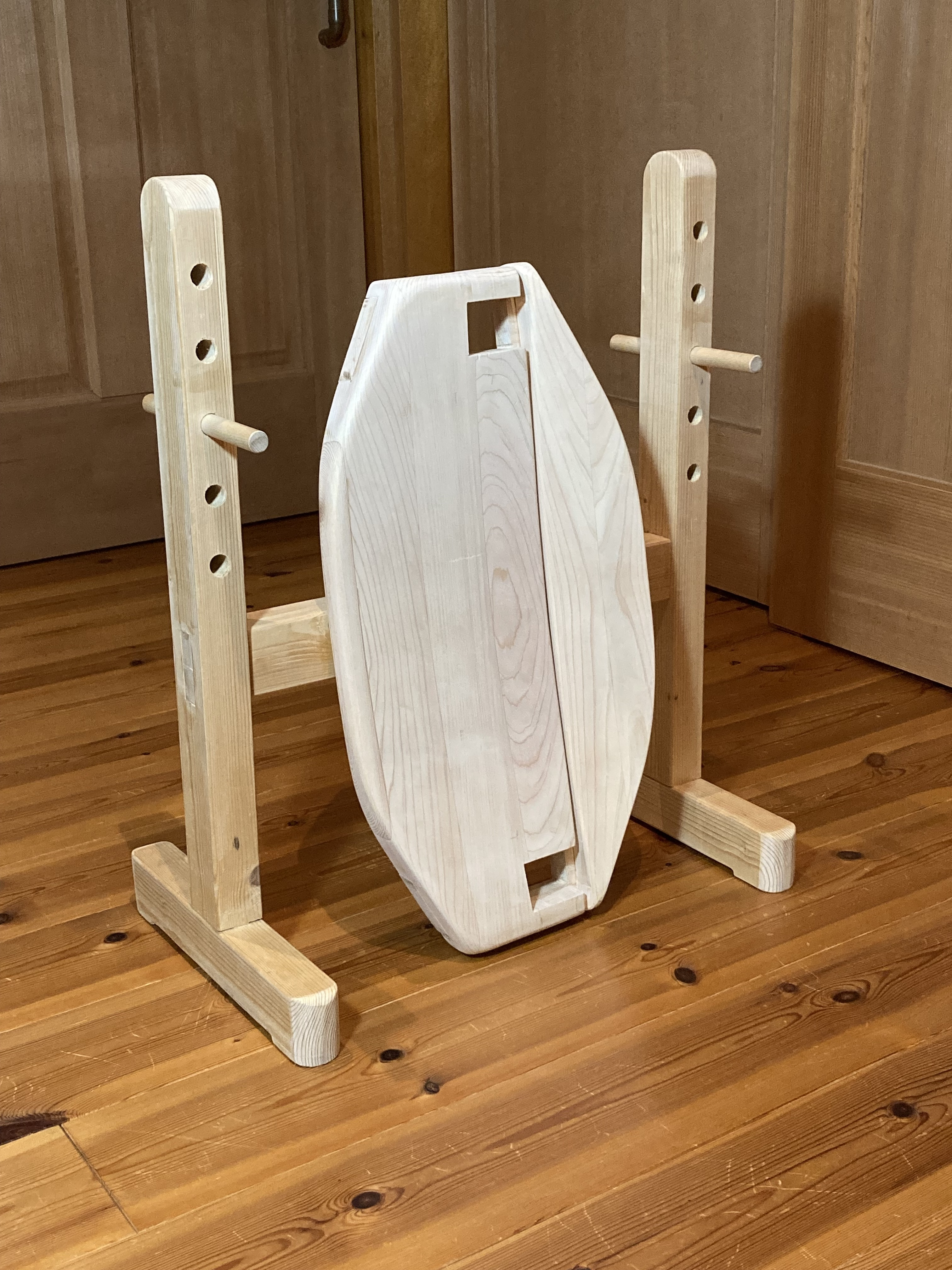 座面の高さを変えるため、脚部にφ15mmの穴を5ヶ所あけ