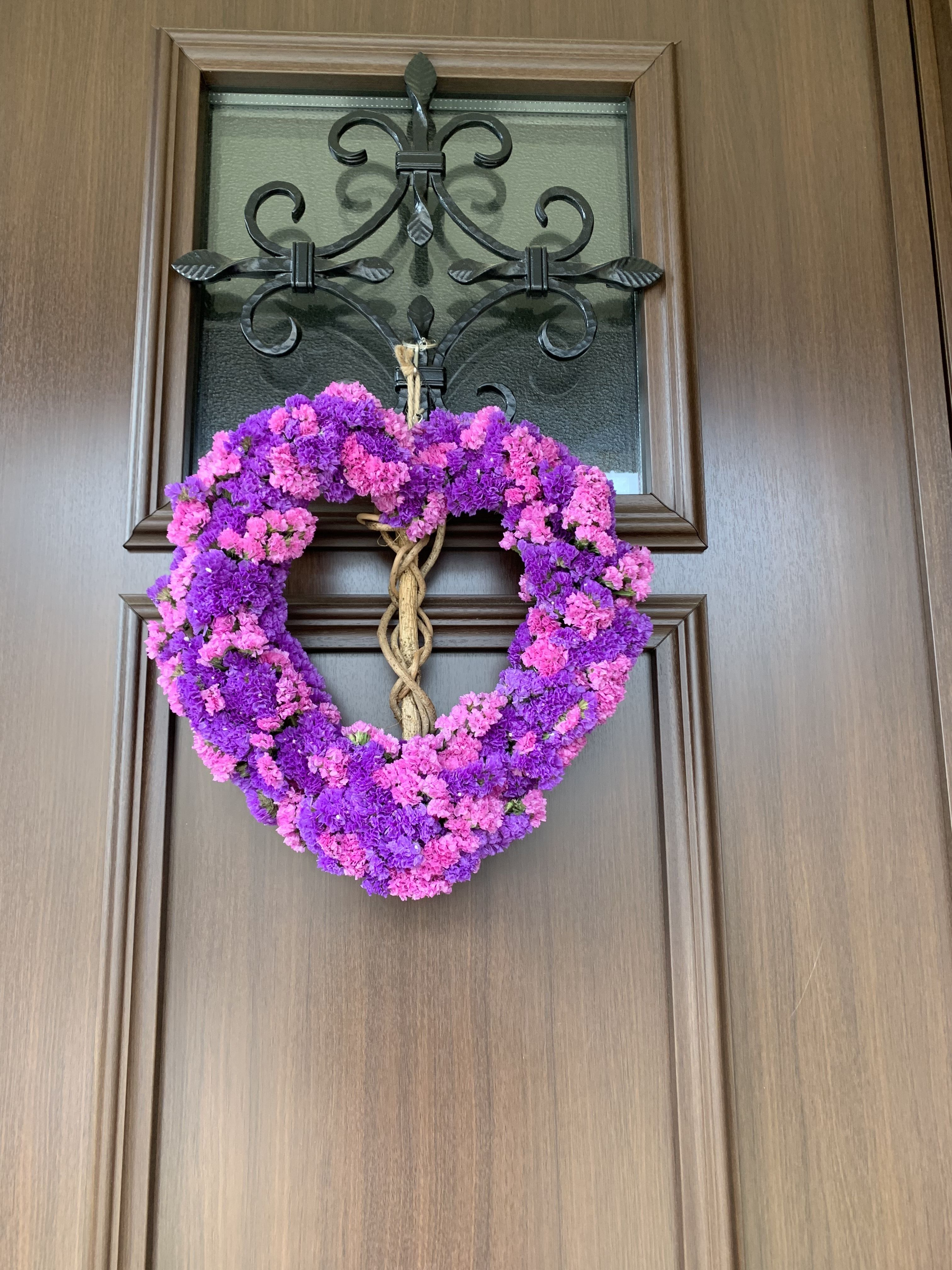 お洒落な玄関に映える色合いのリースで癒されますね🥰