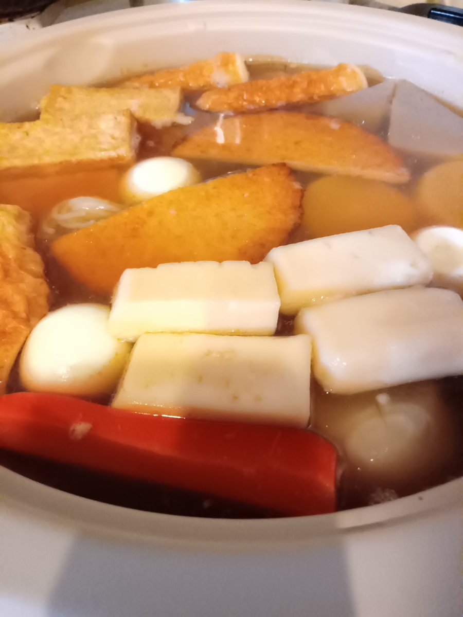 投稿を表示偶然にも同じくおでん作りました。寒くなってくると食べたくなりますよね。&薪ストーブの方(お名前出していいのか迷い許可なしには失礼と思い)の投稿で食べたくなりまして😆大根を下茹でして、ゆで卵も作り、その他と煮込みました。具材の入れ方に順番があるのを知らなく、今回やってみました。自分は好みで、おでんの際にはからしだけです😋