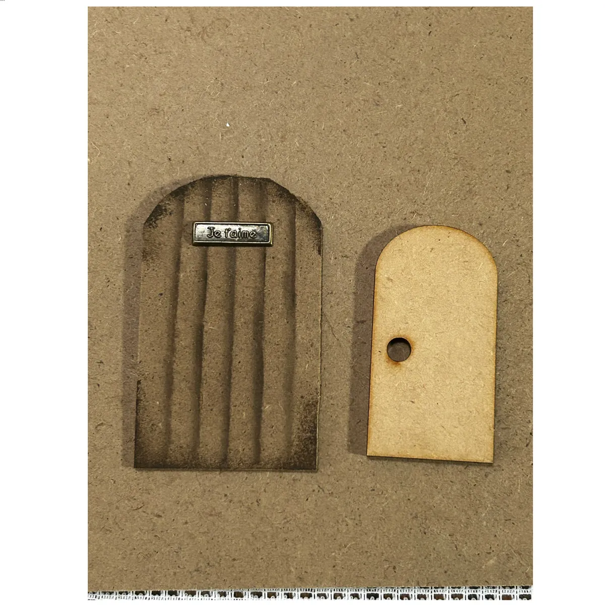 一緒に、窓にルーバーを付けたかったので、同じ台紙をカットし、ドアと一緒にアクリル絵の具で塗り、木目を描きました♪