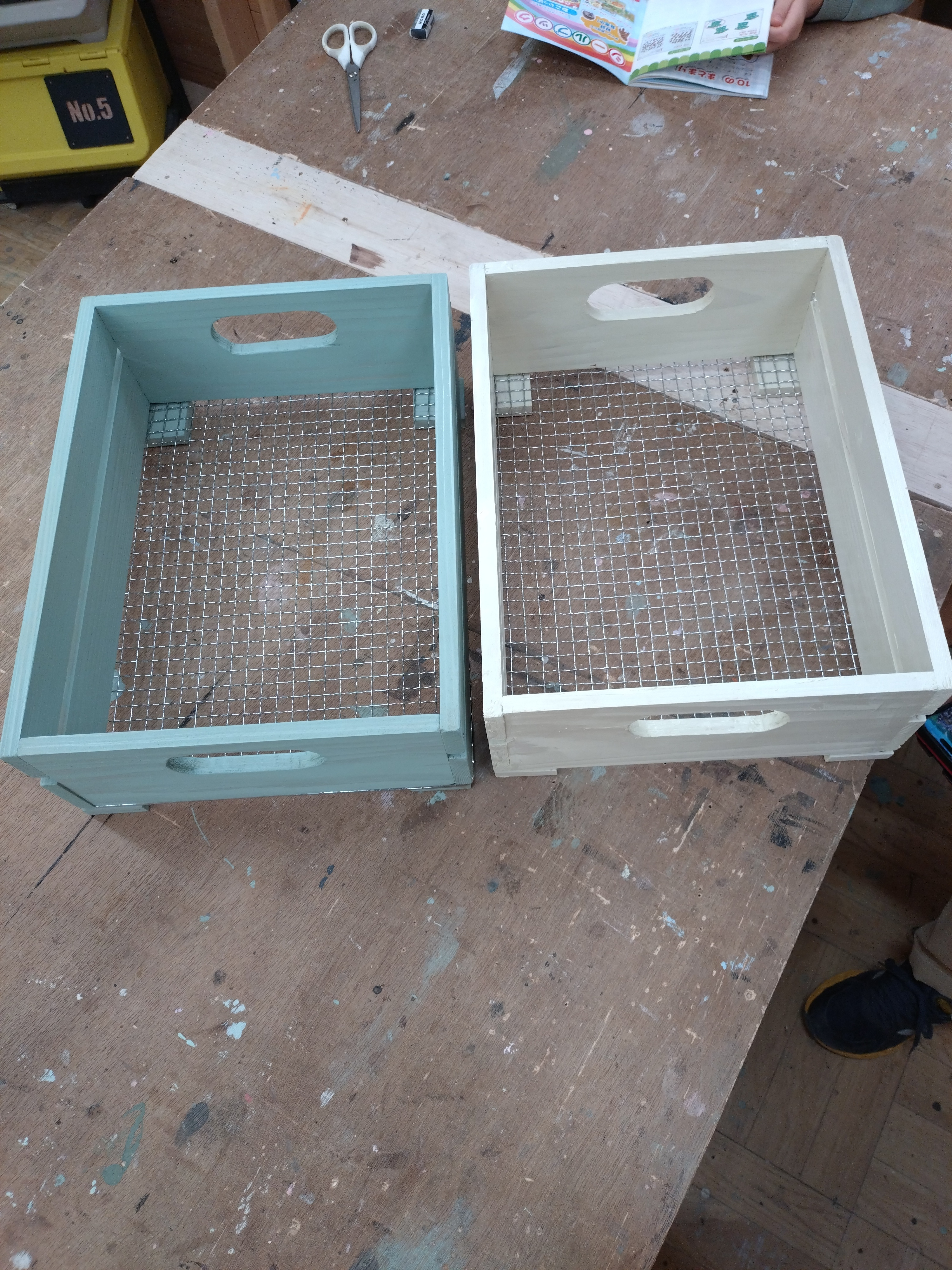 ウッドコンテナはアドバイザーさんから、スタッキングするなら四隅に付ける板を少し内側にとアドバイスをいただき、今回も同じようにしようと考えていました。